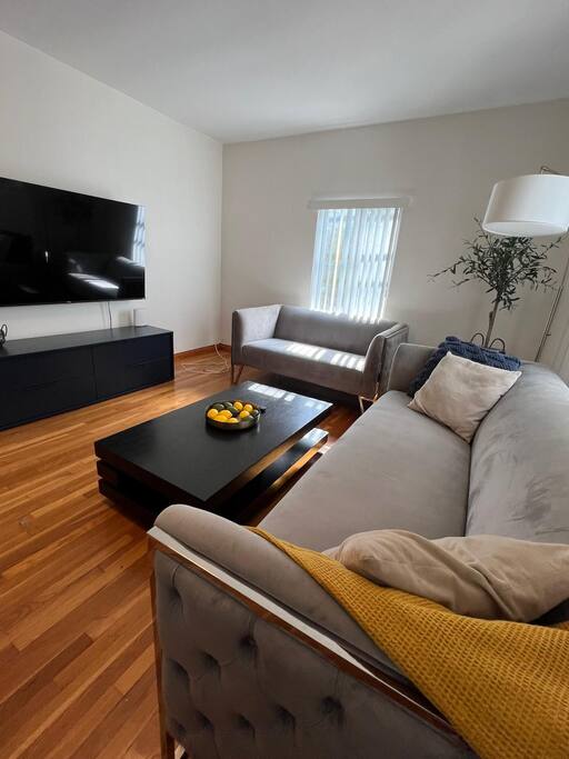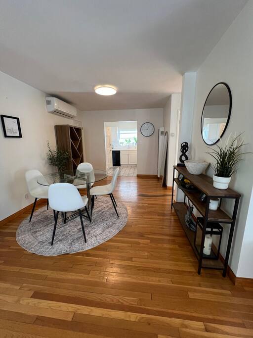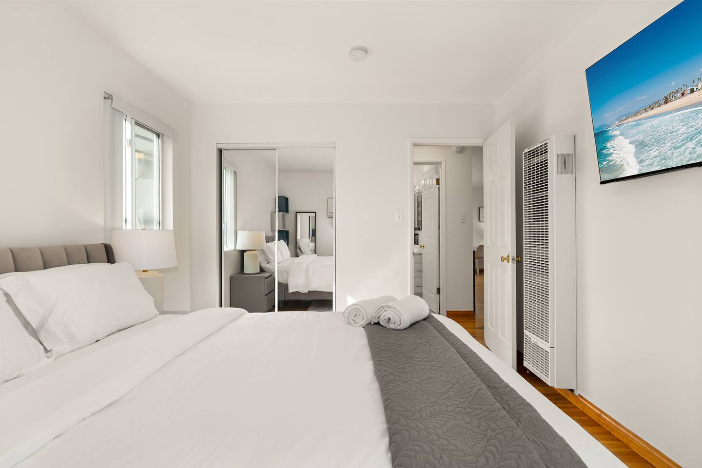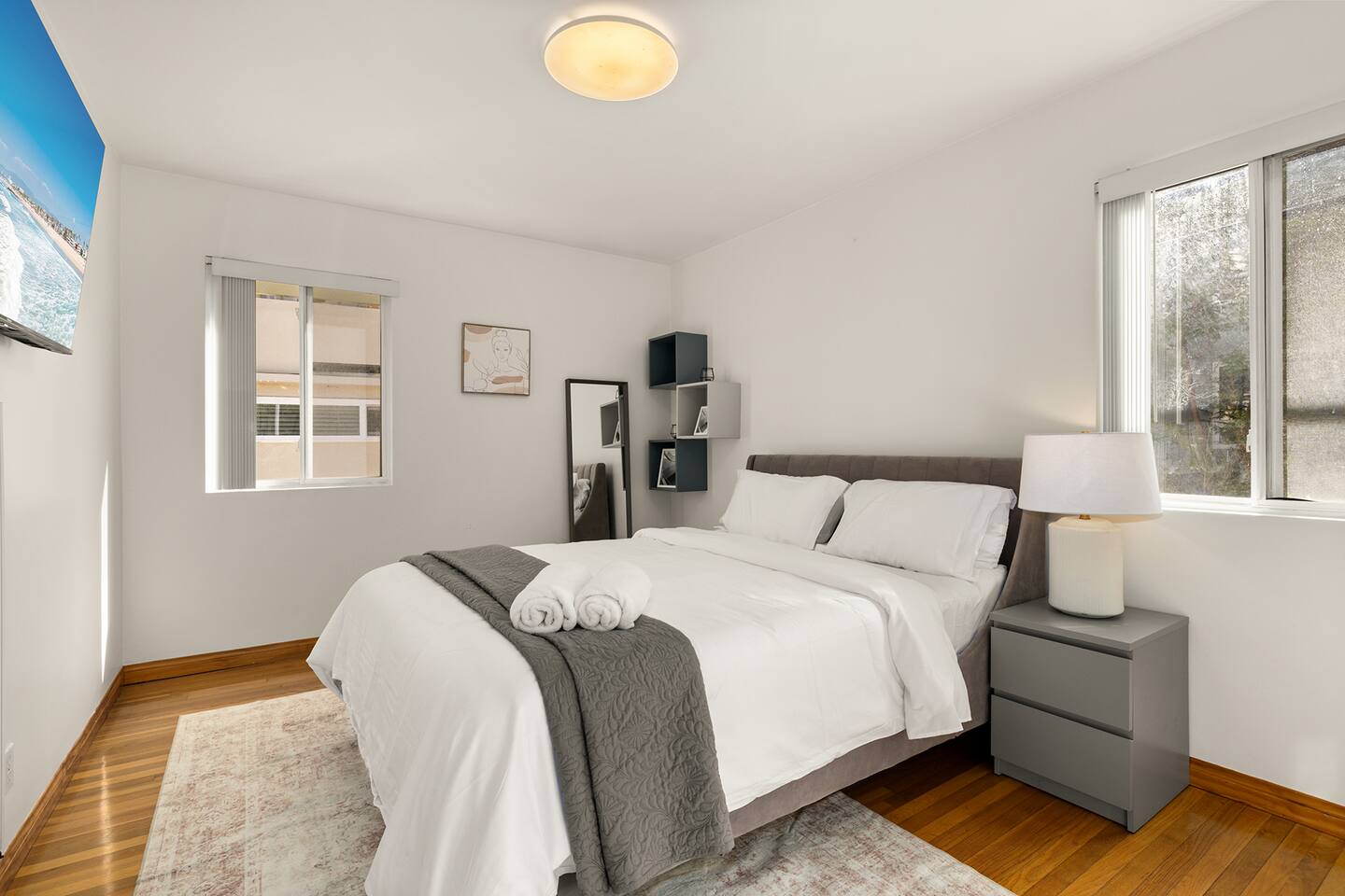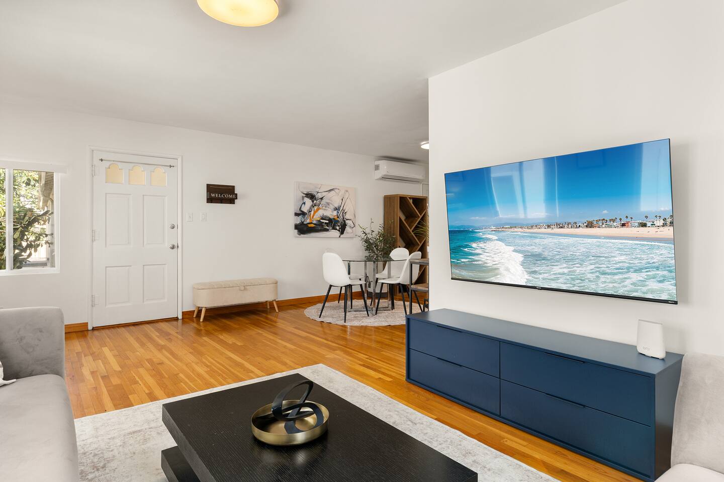NEW LISTING! HOSTED BY EXPERIENCED SUPERHOST! Fully furnished 1BR/1BA apartment in the heart of Brentwood on Wilshire Blvd. Features a spacious living room, full kitchen with dishwasher, microwave & fridge, dining area, and cozy bedroom with queen bed & TV. Includes carport parking and in-unit washer/dryer. Steps from Erewhon, Alfred Coffee & Brentwood’s top shops. **30 nights minimum, choose 31 nights to remove city tax.**