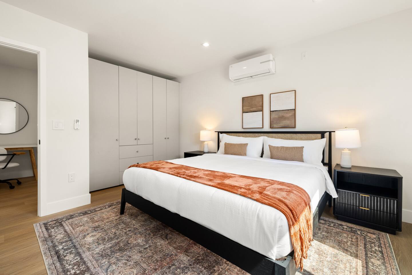 About the place Step outside and enjoy the peaceful shared spaces at The Montana, including a citrus-lined courtyard, perfect for morning coffee or relaxing in the evening. One assigned parking space is included, and a washer and dryer are available for convenience. The modern kitchen is both practical and stylish, ideal for casual meals or entertaining, while the bathroom has contemporary finishes for a clean, spa-like feel. Built-in closets offer plenty of storage and help keep the space organized and minimalist. Choose 31 days to avoid City tax What to expect on the place Modern Living – Brand-new one-bedroom residence with sleek hardwood floors and thoughtful details throughout. Kitchen & Bath – Contemporary kitchen designed for both everyday meals and entertaining, paired with a bathroom featuring spa-like finishes. Storage – Generous built-in closets to keep everything neat and organized. Outdoor & Shared Spaces – Enjoy a tranquil citrus-lined courtyard, perfect for morning coffee or evening relaxation. Convenience – Washer and dryer in unit, private parking, and air conditioning for comfort and ease. Comfort – King-size bed for a restful and cozy stay. Location – Ideally situated in Westwood, offering ease and comfort for both business and leisure stays. Best places to visit in the area Location is everything and The Montana puts you in the center of it all. Just minutes from the energy of downtown Westwood, you’ll have easy access to UCLA, Westwood Village, and some of the best cultural attractions and dining destinations in Los Angeles. Enjoy the convenience of high-end grocery stores, boutique fitness studios, local coffee shops, and Brentwood’s premier retail and restaurant scene, all just a short drive or bike ride away. Whether you're commuting, exploring, or relaxing at home, this location offers the best of the Westside lifestyle. The Montana isn’t just a place to live, it’s a place to thrive. Book now and save!