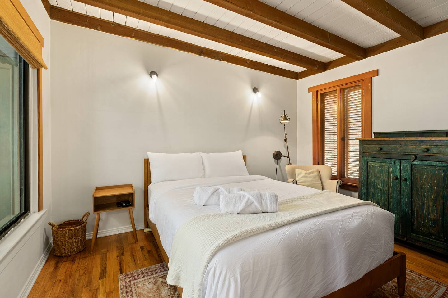 Welcome to your peaceful retreat in the heart of Santa Monica. This charming 2-bedroom, 1-bathroom home offers the perfect blend of comfort and convenience for those looking to unwind and soak in the best of the California coast. Just a short stroll from the beach, cozy cafés, and vibrant local shops, you’ll be perfectly positioned to enjoy it all—while still tucked away in a quiet, picturesque neighborhood. Inside, the space is bright, clean, and thoughtfully designed—ideal for couples, families, or remote workers in need of a relaxing escape. Whether you're catching a sunset by the ocean, exploring nearby attractions, or enjoying a quiet night in, this cozy retreat has everything you need for a carefree stay. The beautiful living room sofa easily converts into a comfortable twin bed, perfect for relaxation. The full kitchen comes fully equipped with everything you need to cook, dine, and feel right at home.