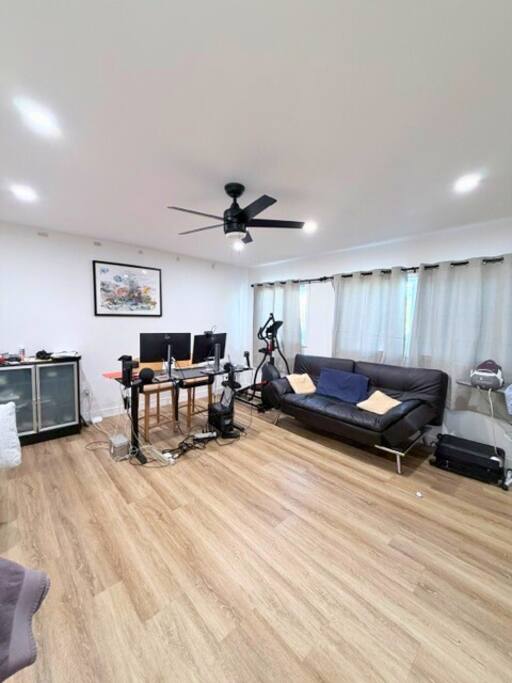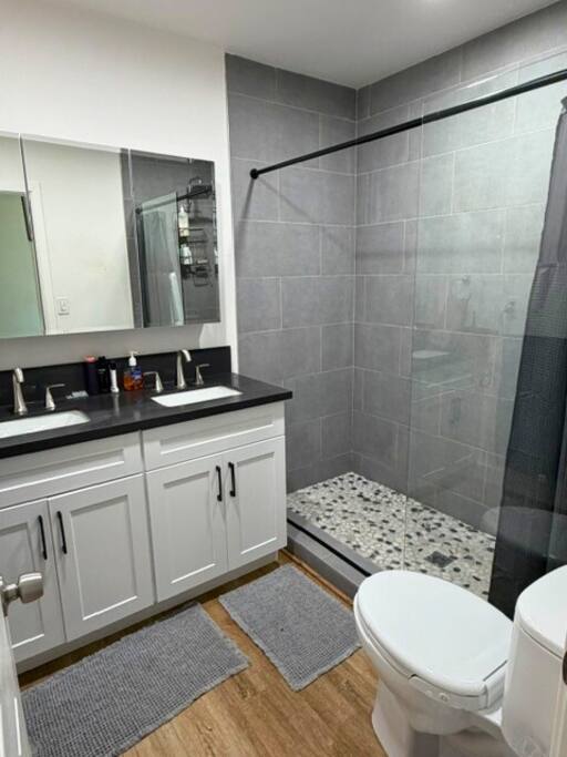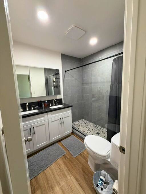 Experience the ultimate coastal lifestyle in this beautifully renovated three-bedroom apartment, located just minutes from the sand in iconic Venice Beach. Thoughtfully designed with modern finishes, the spacious interior features sleek plank vinyl flooring, recessed lighting, and an open-concept living room that flows seamlessly into the kitchen and dining areaideal for both everyday living and entertaining. The stylish galley kitchen is well-appointed for cooking and hosting. The home offers a full bathroom with a walk-in shower and striking tile work. The first bedroom is generously sized with a large mirrored closet, while the second bedroom is even more spacious and also features mirrored closet doors. The primary bedroom includes an ensuite bathroom and mirrored closet doors, providing added comfort and privacy. Additional highlights include a separate laundry room, two-car garage parking, and an unbeatable location near Rose Avenue, Brooks Avenue, Main Street, and the popular shops and restaurants of Abbot Kinney. This beachside residence offers the perfect blend of comfort, style, and walkable convenience in one of Los Angeles' most vibrant neighborhoods.