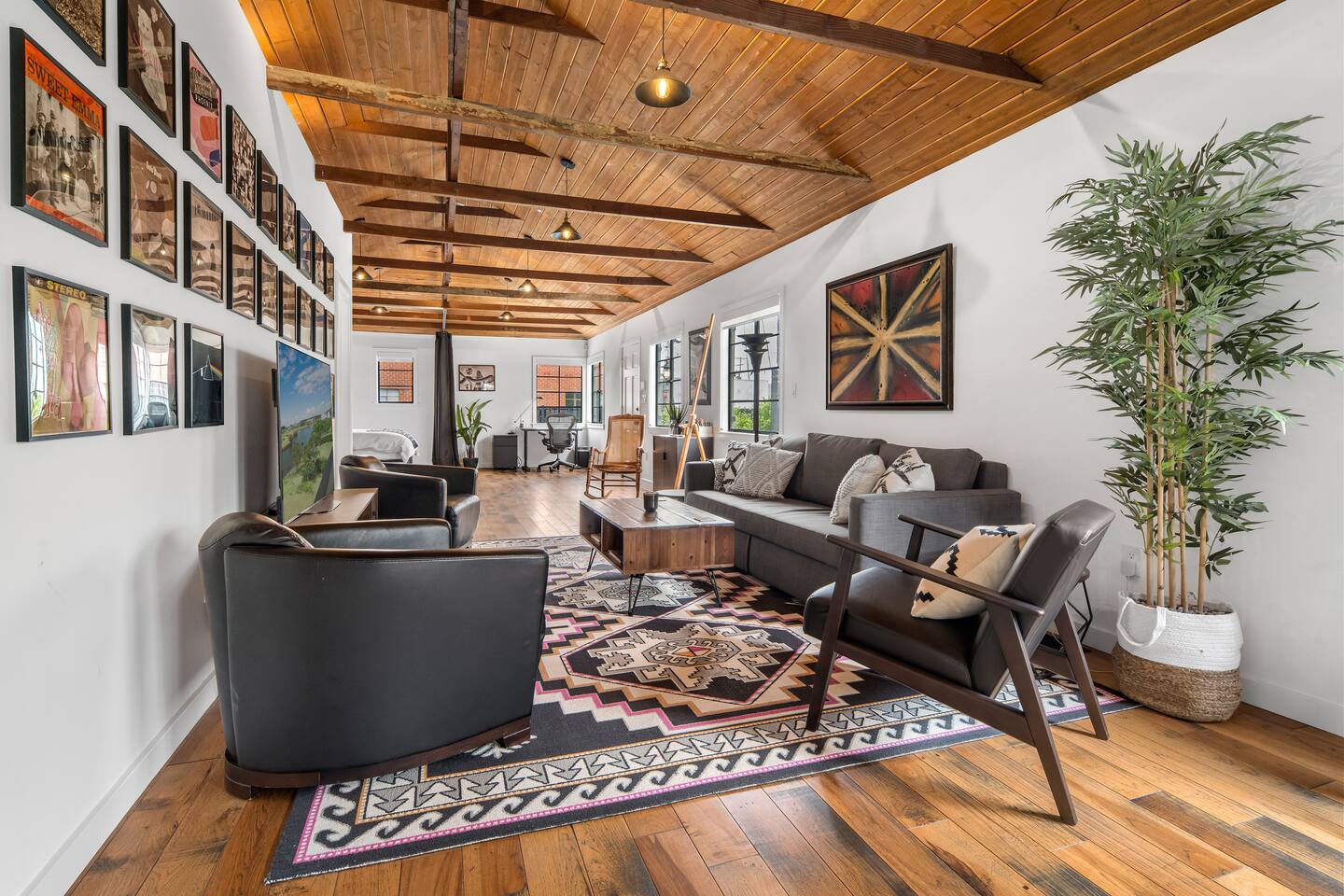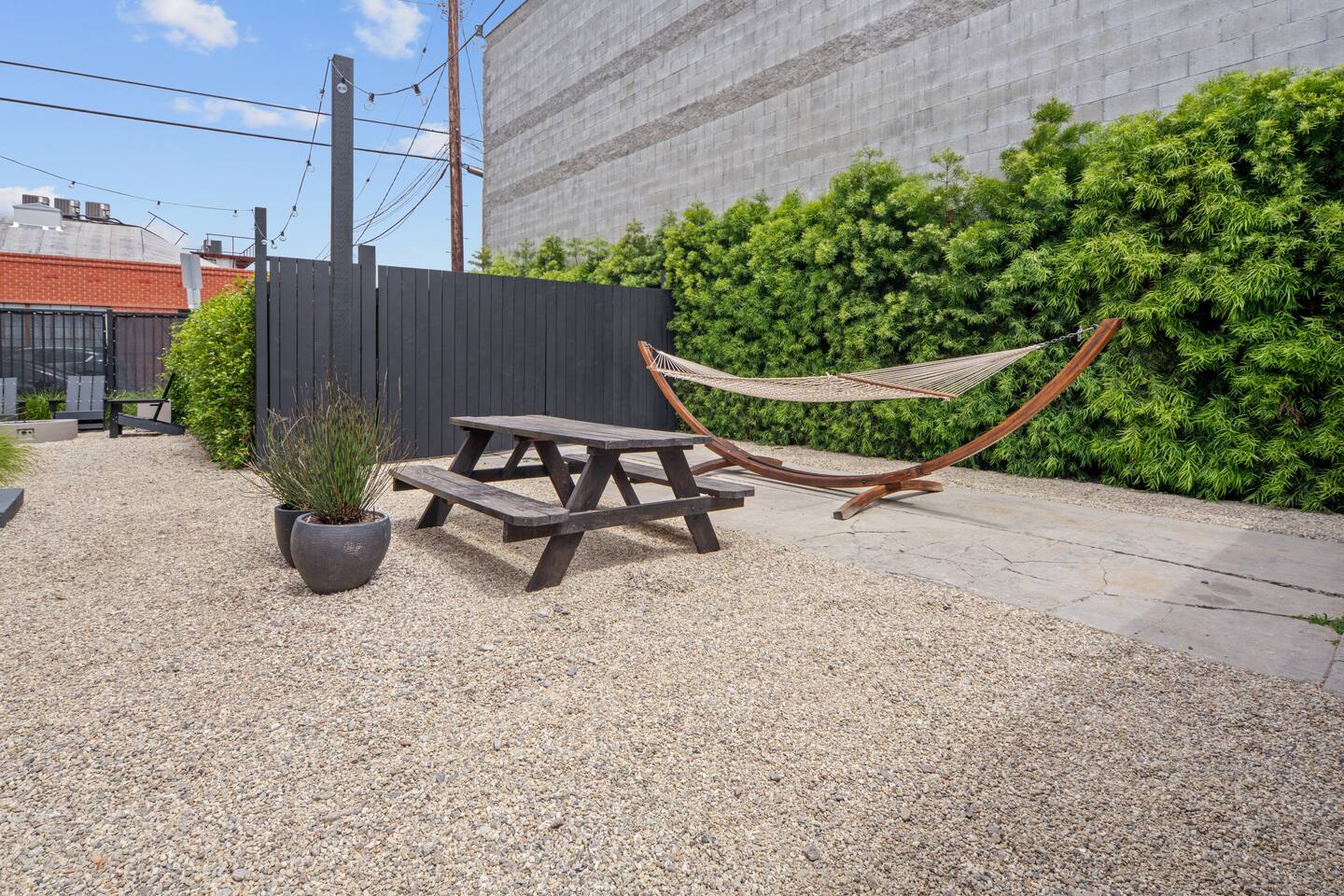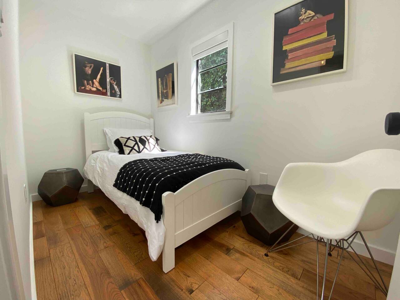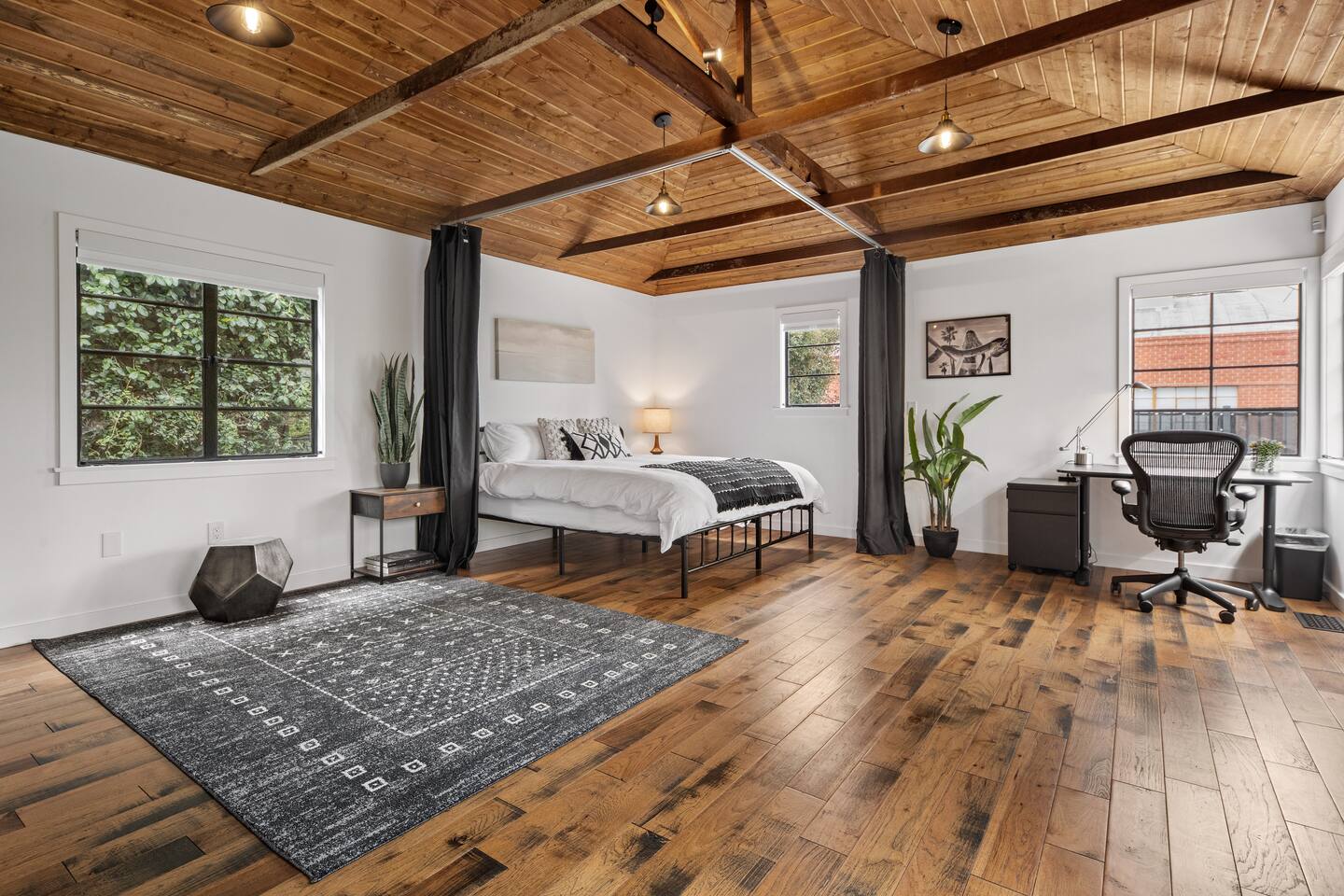 Your Venice Beach Bungalow Retreat Stay in the heart of Venice, just steps from Abbott Kinney, in this freshly renovated 1-bedroom bungalow full of character and light. Walk into a bright, open living room with soaring wood ceilings, hardwood floors, and tons of natural light. The space flows right out to a private outdoor lounge with a fire pit, shaded by trees, a perfect spot for morning coffee or late-night hangs. The main sleeping area has a king-size bed you can enclose with blackout curtains for privacy. There’s also a desk for work, a cozy second bedroom with a twin bed, and plenty of creative touches—an electric guitar, bongo, and even an art stand with paints if inspiration strikes. The kitchen is fully stocked with pro-grade appliances, stone countertops, and everything you need to cook. You’ll also have fresh linens, eco-friendly soaps, beach towels, smart TV, and fast WiFi to keep you connected. And best of all, the whole place is yours! No shared spaces, private garage parking included. This is your own little slice of Venice: modern, artsy, and just a short stroll to the beach, shops, and restaurants.