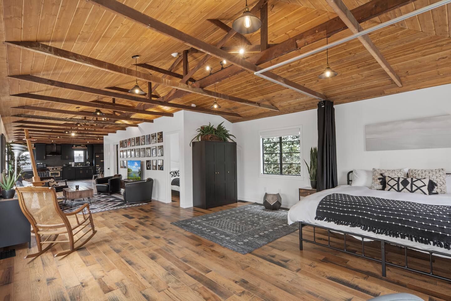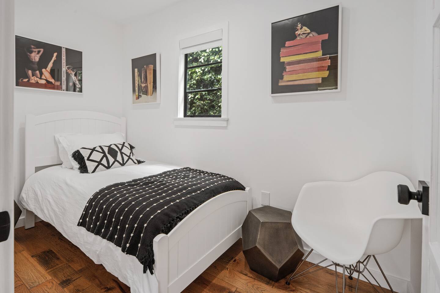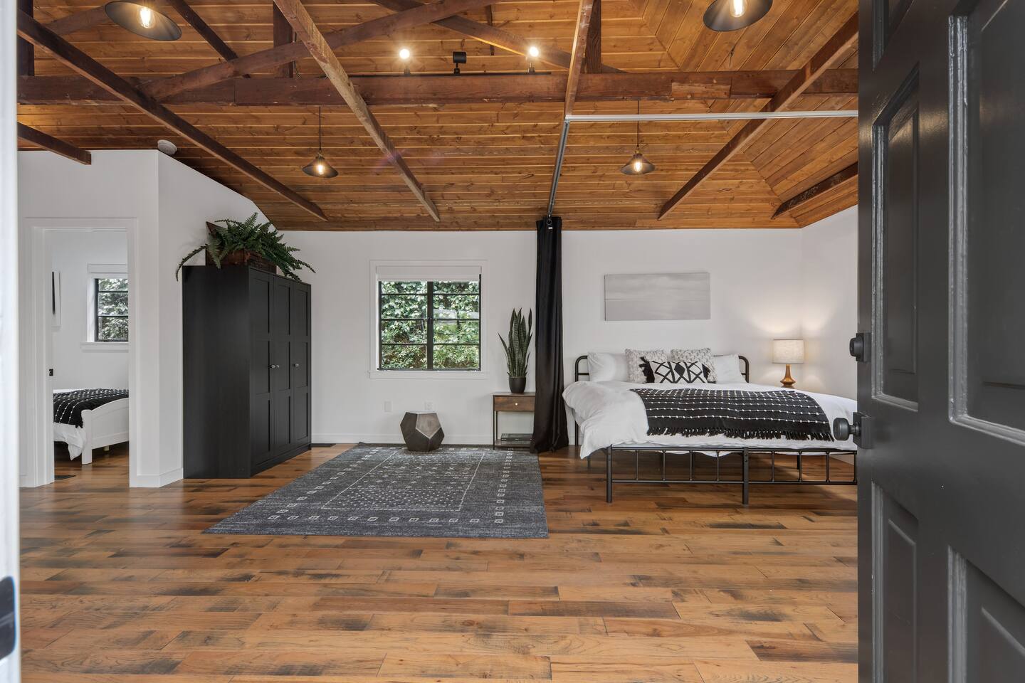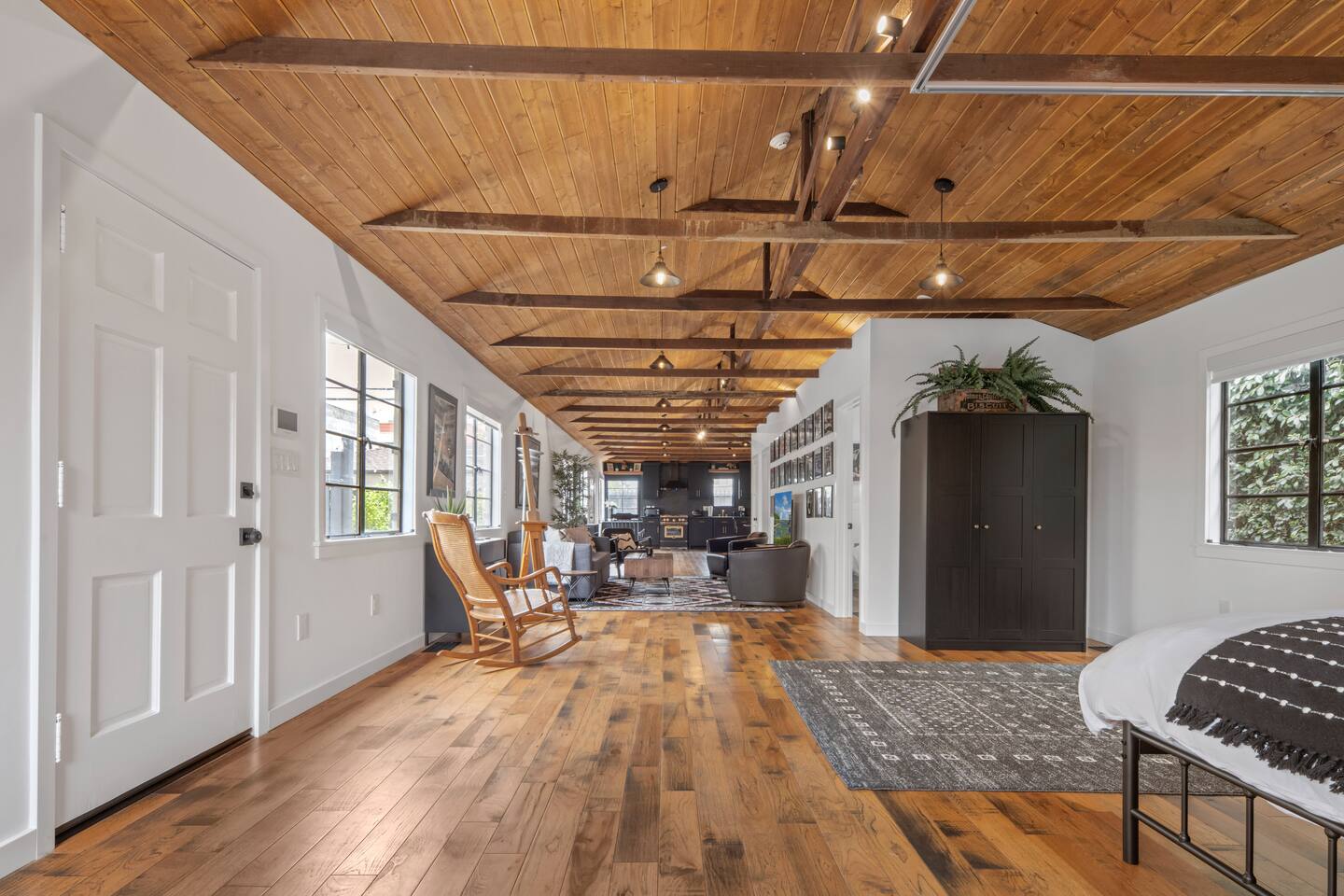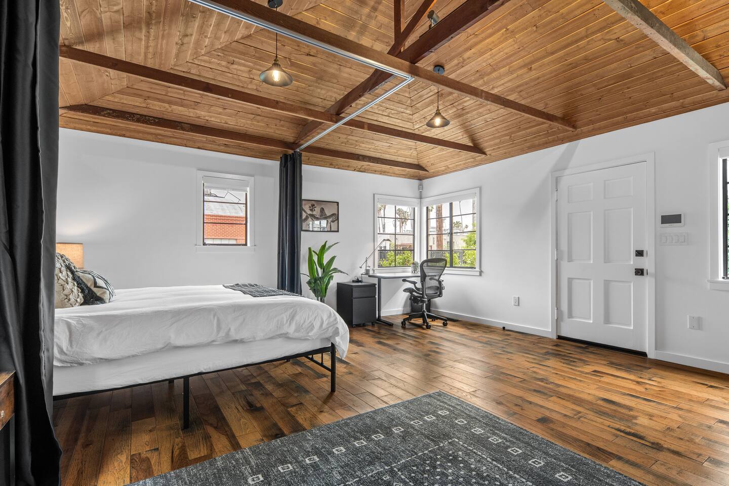 This unique bungalow is just off the famous Abbot Kinney. - Private, surrounded by lush greenery, with gated parking, outdoor seating, a fire pit, and a garage. - Open space with vaulted wooden ceilings, wood floors, and a sleek black kitchen with chef-grade appliances. Includes a 60" smart TV, electric guitar, and bongos - KING sized bed in the open space and a cozy twin bed in a separate bedroom **Book for 31 days or more and avoid city tax.**
