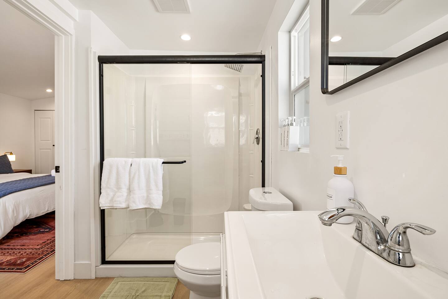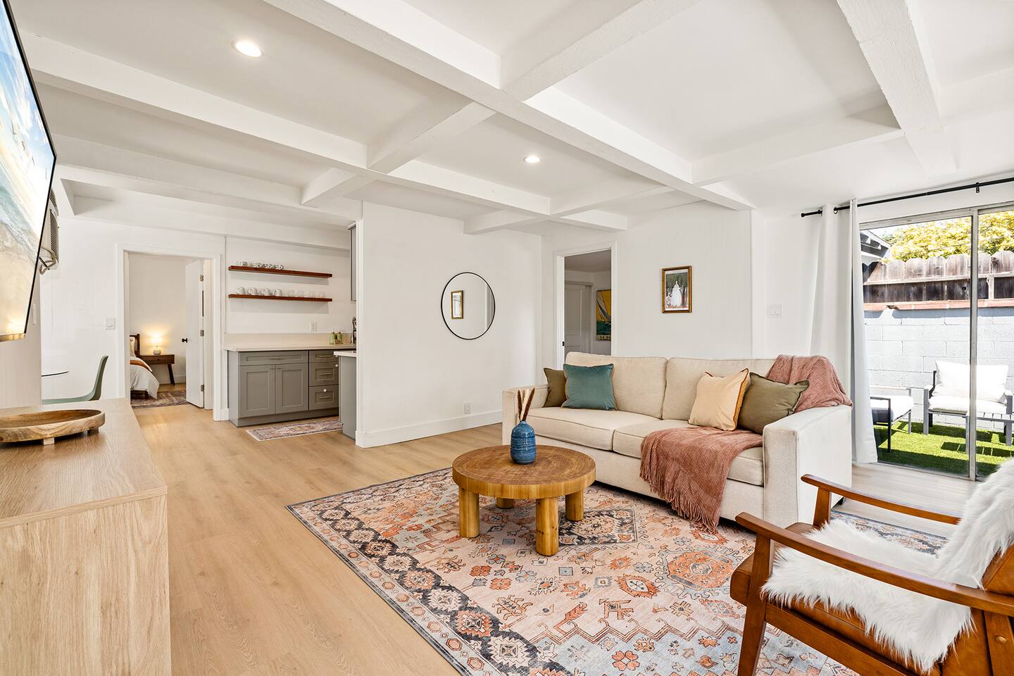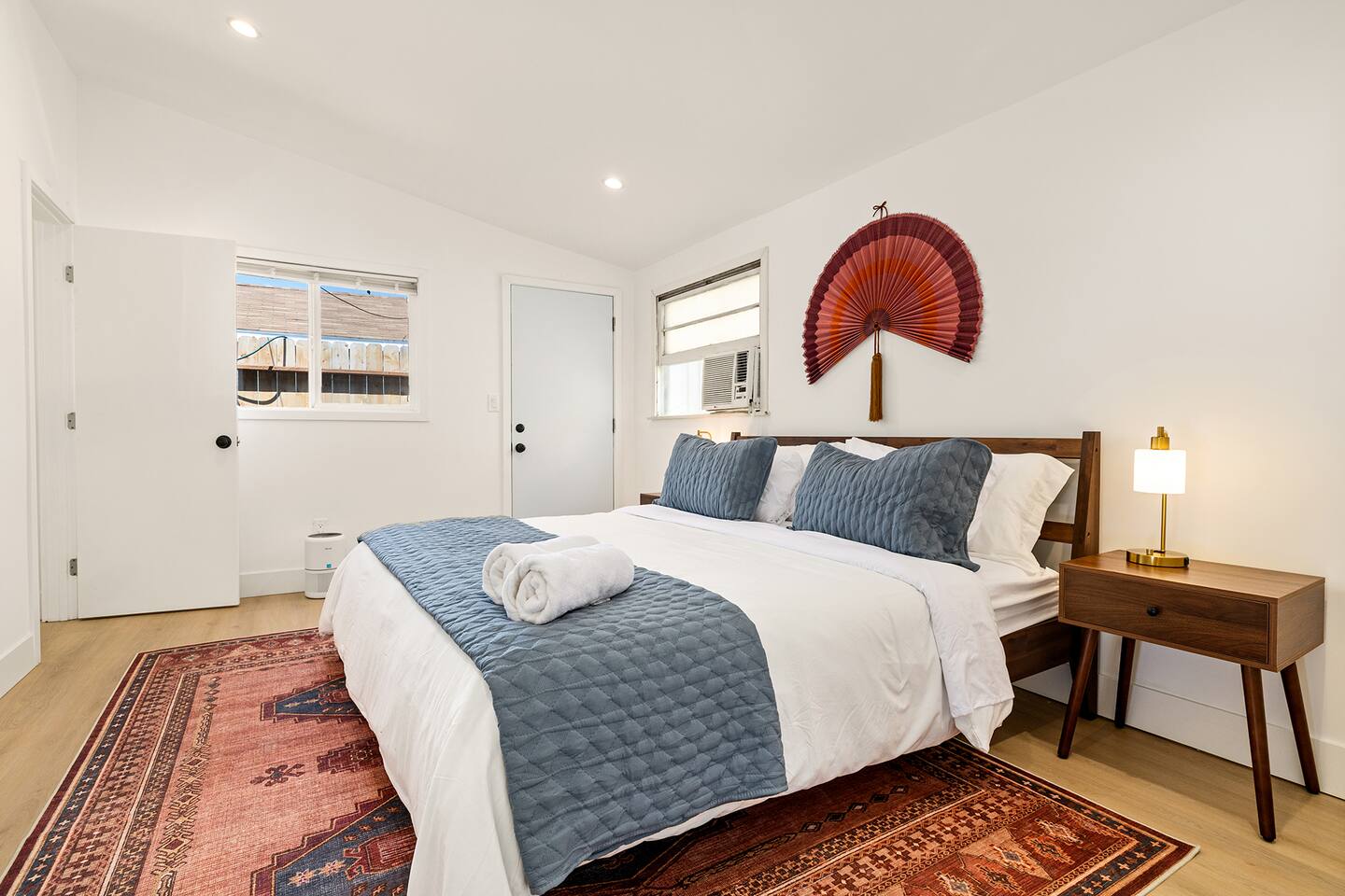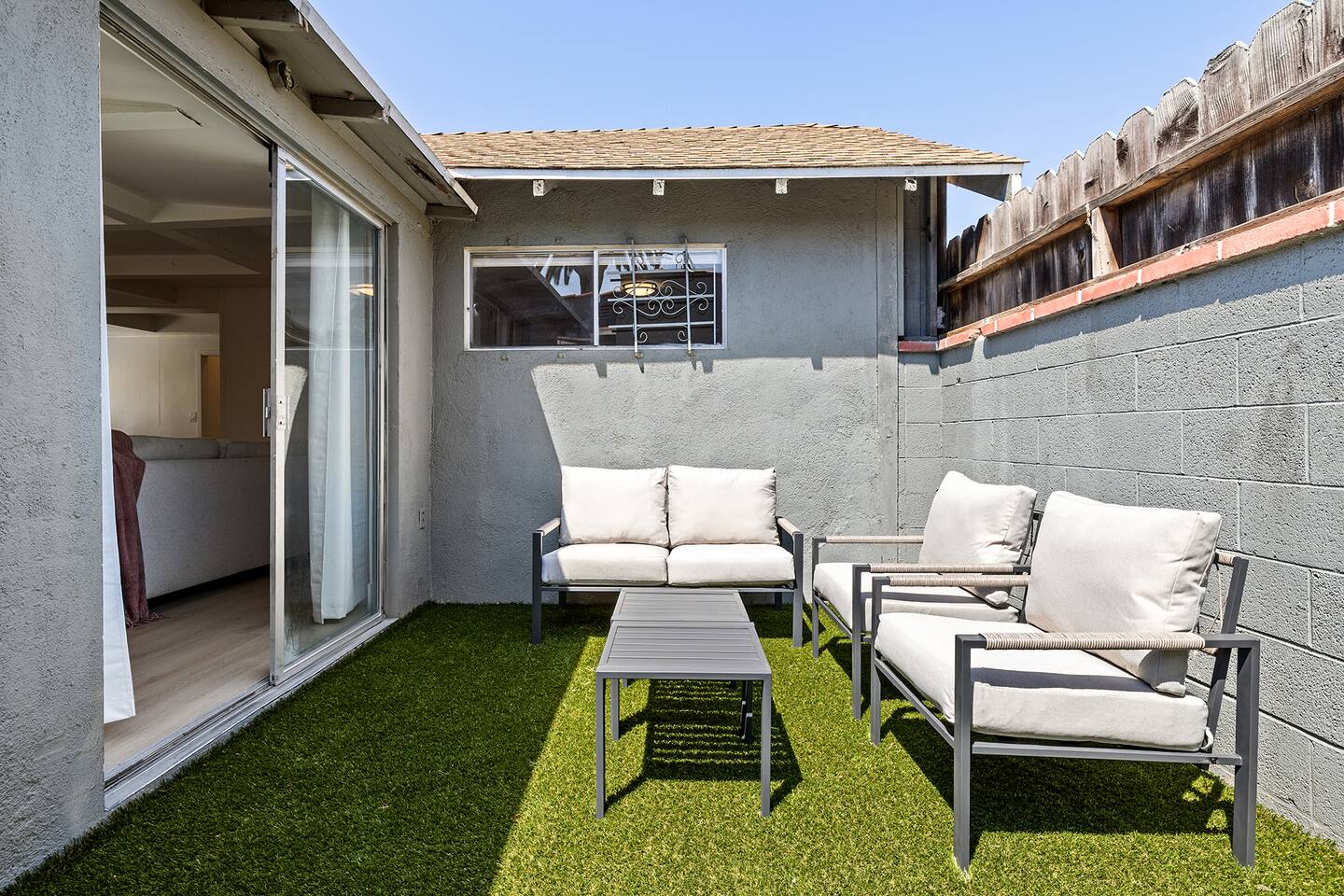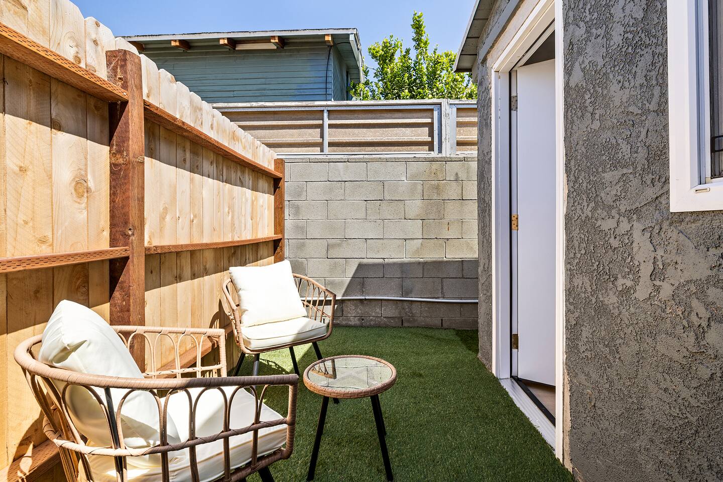 NEW LISTING! HOSTED BY SUPERHOST! This beautifully designed standalone cottage/bungalow offers the perfect blend of comfort and privacy, featuring three generously sized bedrooms and two stylishly appointed bathrooms. Located within a peaceful two-unit duplex, this home ensures a sense of tranquility while still offering the convenience of close proximity to your neighbor. Inside, you'll find an array of thoughtful details, including a convenient washer and dryer, making laundry a breeze. The home boasts two charming patios, ideal for relaxing or entertaining, and is equipped with both air conditioning and heating to maintain the perfect indoor climate year-round. The master suite is a true retreat, offering a private entrance for added convenience and seclusion. It includes its own private balcony, perfect for enjoying your morning coffee or winding down in the evening, and a luxurious en-suite bathroom designed for ultimate relaxation.