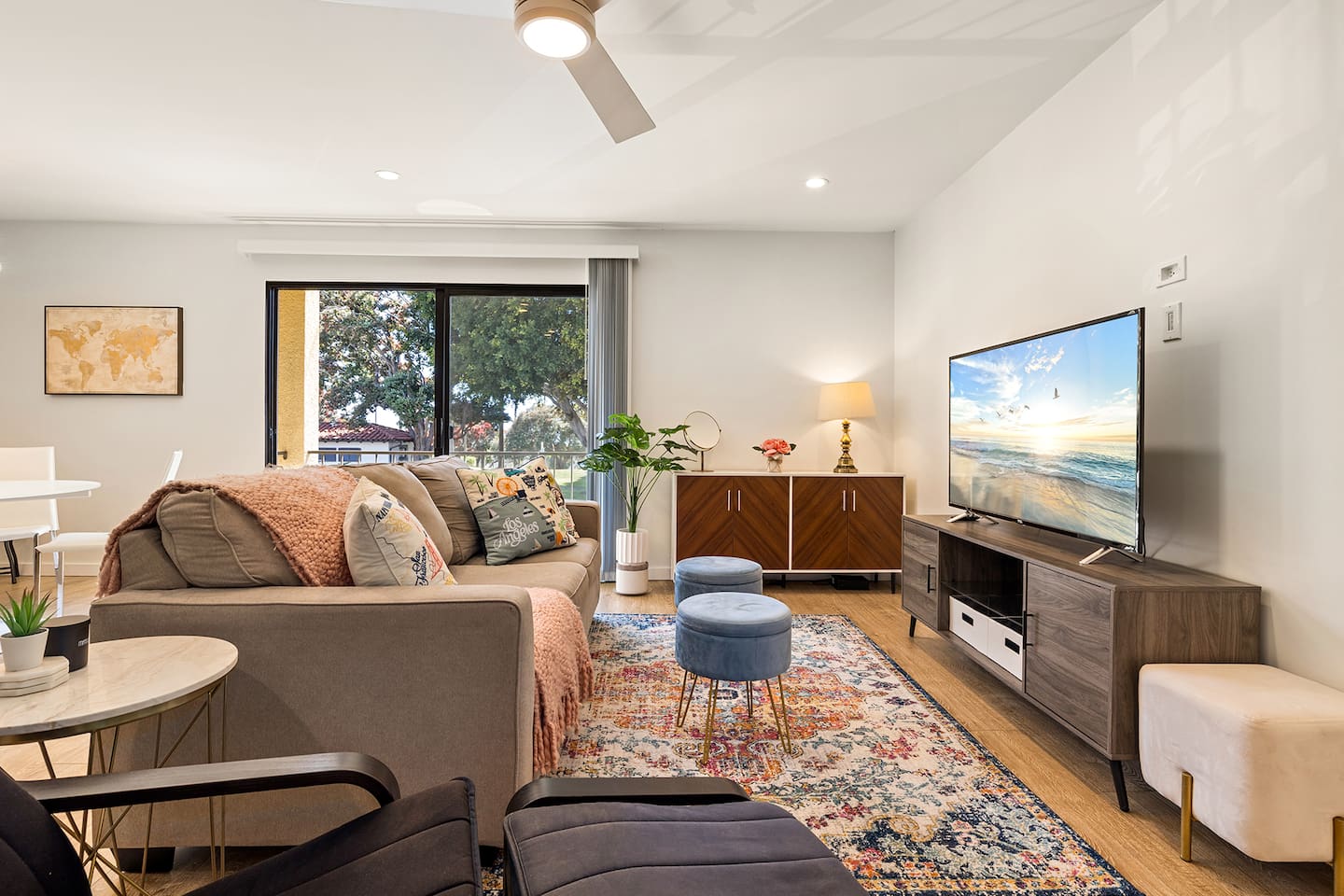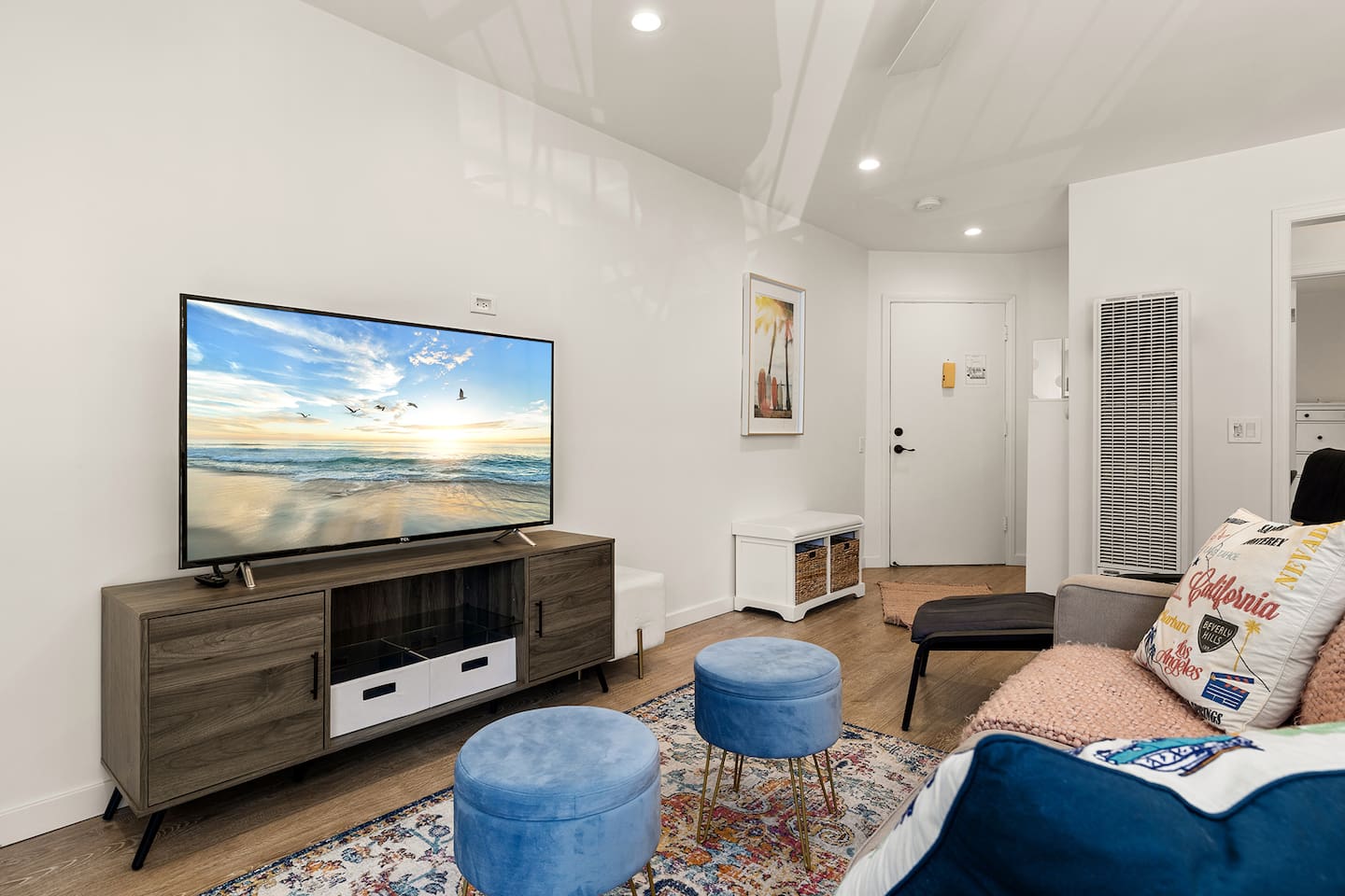 About the place Enjoy the best of Santa Monica in this beautifully updated condo, just minutes from the beach and Santa Monica Pier. Spend sunny days on the sand with beach chairs, towels, and a volleyball, then relax on your private balcony with peaceful park views. Wake up with morning coffee on the balcony, unwind in the bedroom with courtyard views, and explore nearby attractions like the 3rd Street Promenade, Abbot Kinney, and local shops and cafés! All just a short walk away. **30 nights minimum, choose 31 nights to remove city tax.** What can you expect on the place Stylish & Comfortable – Fully furnished condo with quartz countertops, modern lighting, and sleek matte black faucets. Kitchen – Well-equipped for home cooking. All-Inclusive Utilities – Water, Wi-Fi, electricity, gas, trash, and parking included for a stress-free stay. Convenience – On-site shared laundry and private garage parking for one car. Best place to Dine and Visit near the area Near 4th Street, you can enjoy Santa Monica State Beach for sunbathing and surfing, visit the iconic Santa Monica Pier with its amusement park and restaurants, stroll along the lively Third Street Promenade with shops and street performers, relax in Palisades Park with ocean views and walking paths, and explore the charming shops and cafés along Main Street.