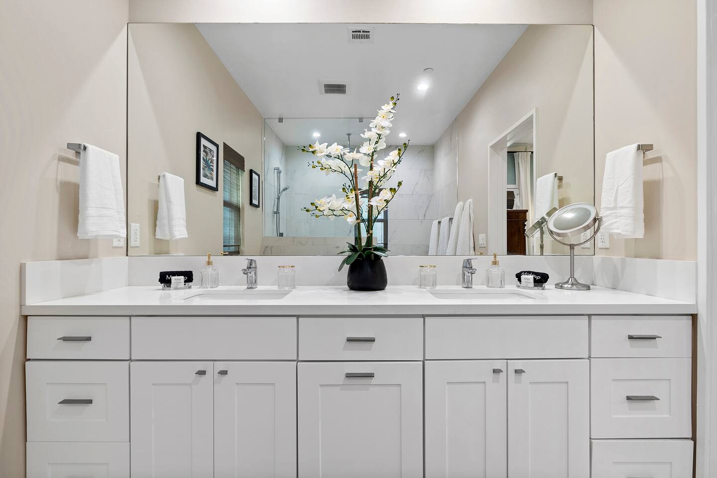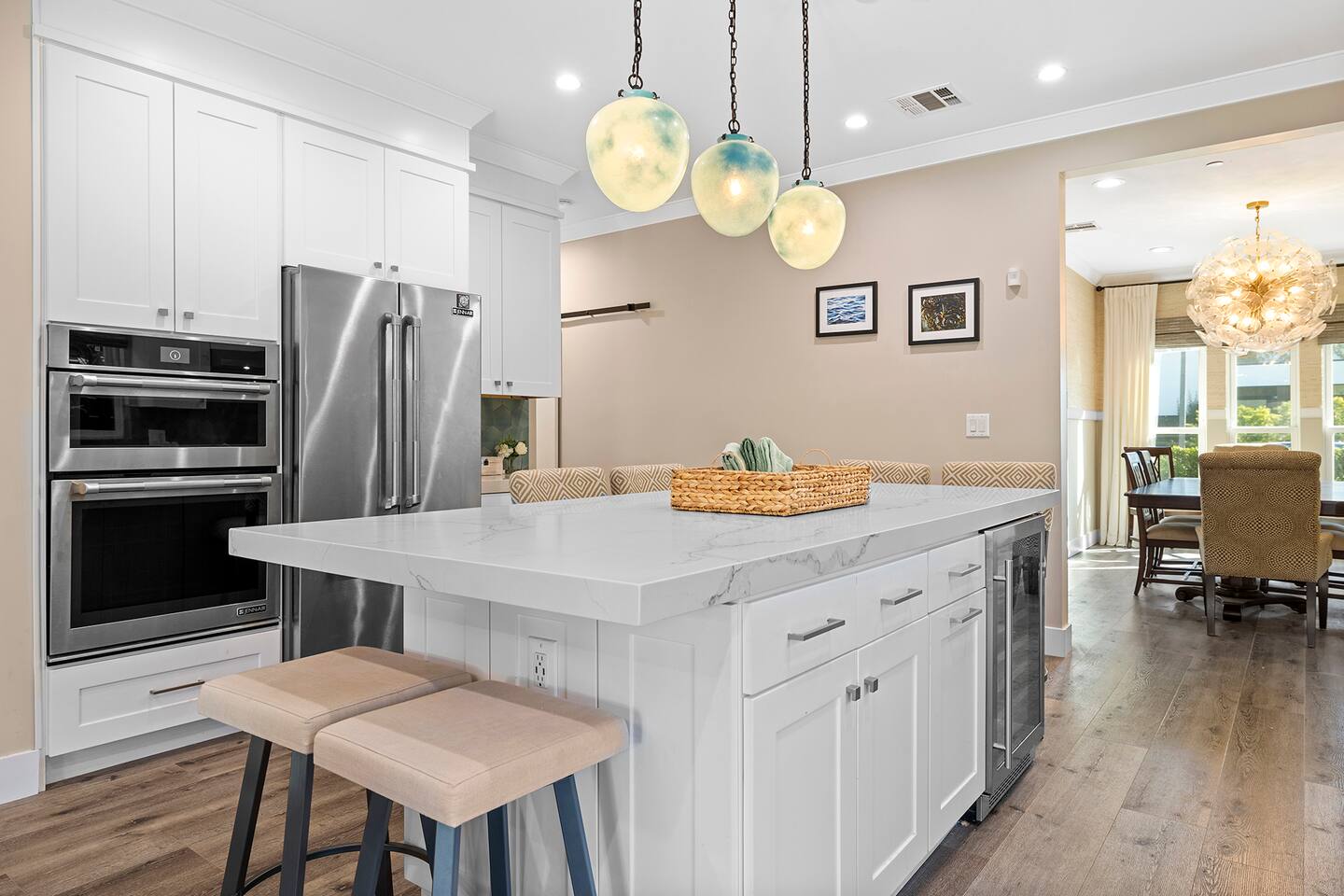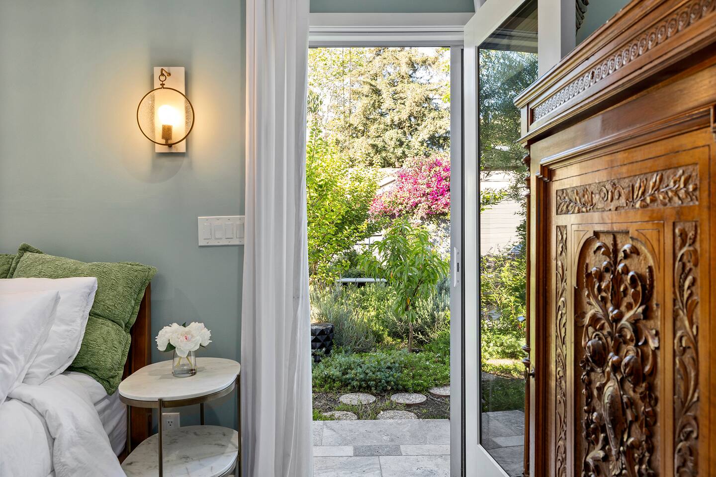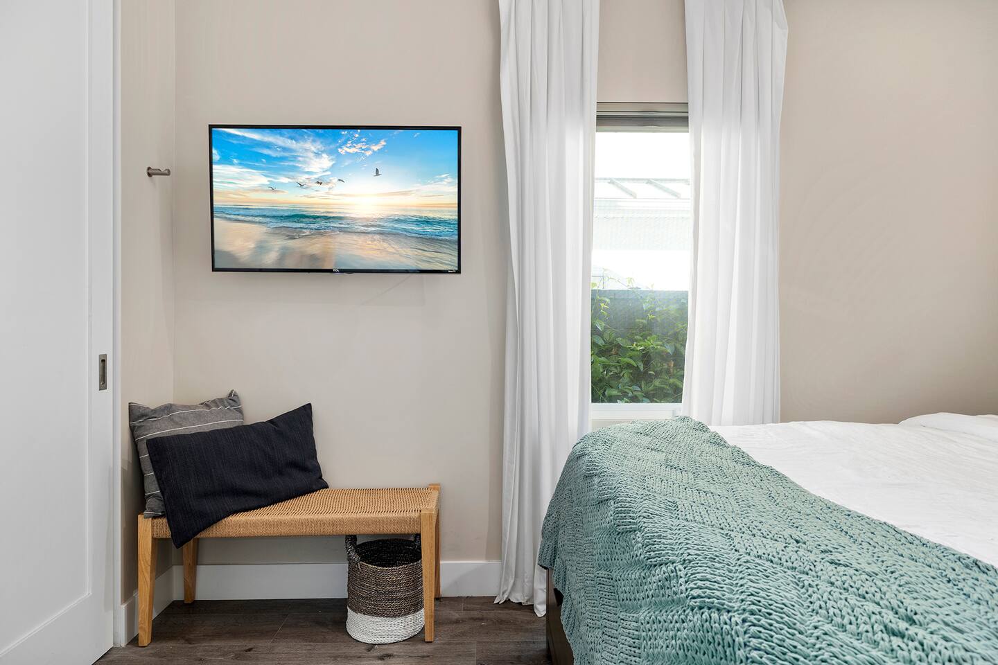 Discover modern living in Mar Vista! This home opens up to a beautiful garden with a heated pool and outdoor kitchen. Inside, relax by the fireplace, watch TV on the 60" flat-screen, or use the high-speed internet. The kitchen has sleek quartz countertops, and the master suite has its own bath and direct pool access. Two additional bedrooms offer comfortable queen beds. A perfect mix of indoor comfort and outdoor fun.