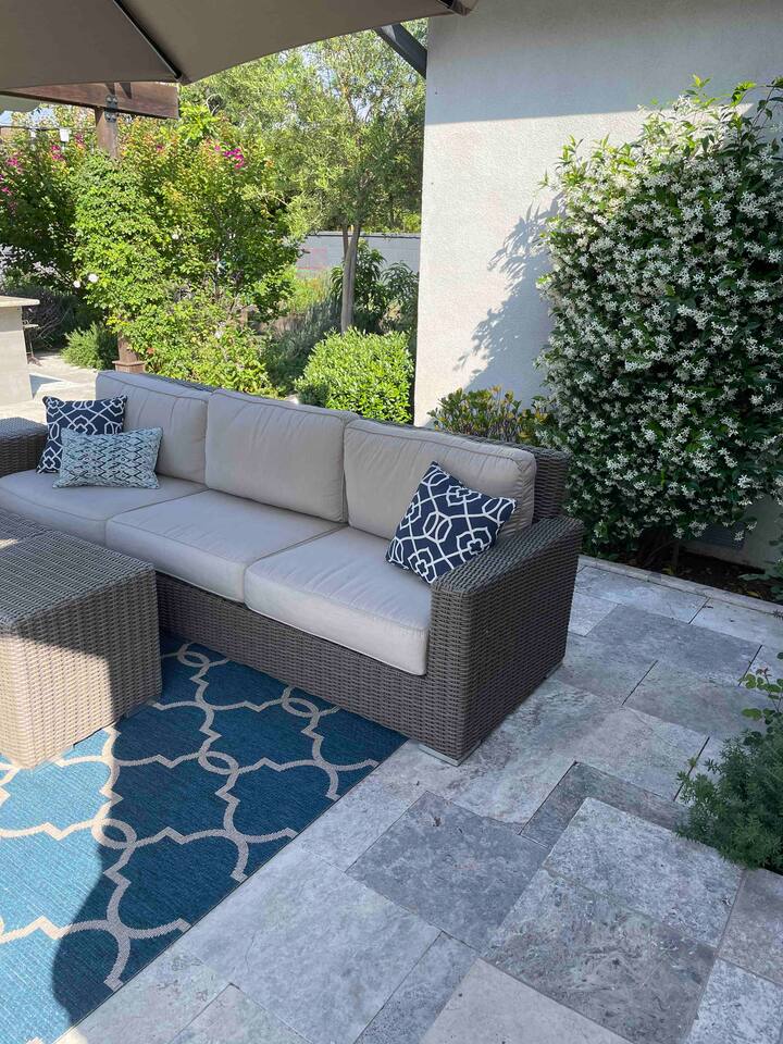 Welcome to our brand-new listing, meticulously maintained and managed by an experienced Airbnb Superhost. About the place Step into a modern, artistic retreat just minutes from the beaches of Venice and Santa Monica. Located near the Sunday Mar Vista Farmers Market, the home is designed with care and style. Outside, enjoy a heated pool, relaxing hot tub, and a BBQ area for outdoor cooking. The lounge around the fire pit and surrounding greenery make it a perfect spot to unwind day or night. Choose 31 days to avoid City tax What can you expect on the place Living & Family Area – Open living room from the foyer, leading to a spacious kitchen and a family room with lounging space and large flat-screen TV. Outdoor Space – Landscaped backyard with heated pool, hot tub, BBQ area, outdoor kitchen, and fire pit lounge surrounded by greenery. Master Suite – King-size bed, spacious bath, walk-in closet, backyard access, and 65" TV. Additional Bedrooms – Two bedrooms with queen beds, comfortable linens, and dedicated workspaces. Bathrooms – Fully remodeled hallway bathroom for convenience. Kitchen – Marble countertops, fully equipped with pots, pans, espresso machine, dishwasher, and all essentials. Connectivity & Entertainment – 1 Gig high-speed fiber internet and Smart Frame LED TV in the family room A few additional features: Free driveway parking with an EV charging station Fresh towels and linens Eco-friendly and organic soaps Beach towels for your seaside adventures Smart Frame TVs throughout Indoor fireplace for cozy evenings Office desk in the guest room Professional-grade BBQ with an outdoor kitchen All amenities required for extended stays, including a private washer/dryer, dishwasher, and a fully equipped kitchen This is not a shared space; it's all yours to enjoy. Best places to Visit and Dine Near Barry Avenue, Mar Vista, you can enjoy a variety of dining and attractions. Grab fresh, local eats at TAVERNA or authentic Mexican tacos at Tacos San Miguel Arcangel, and don’t miss Häsi Bread for unique sourdough and pastries. Visit the Mar Vista Farmers Market for fresh produce and artisanal goods, or spend time outdoors at Culver City Park and along the scenic Ballona Creek Bike Path. For entertainment and culture, explore Sony Pictures Studios or the quirky Museum of Jurassic Technology—all within a short drive from your location.