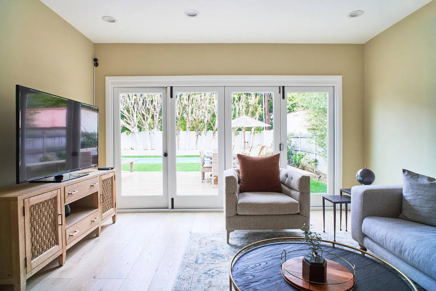 Welcome to our exquisite 4-bedroom, 4-bathroom vacation haven nestled in a tranquil residential neighborhood, offering you the perfect blend of comfort, convenience, and indulgence. This stunning home promises an unforgettable stay, boasting a private pool, soothing hot tub, vast backyard, and a first-place experience that will leave you rejuvenated and delighted. **30 nights minimum, choose 31 nights to remove city tax.** Upon entering, you'll be greeted by an expansive open-concept living area that seamlessly connects the spacious living room, vaulted ceilings throughout, elegant formal dining area, and a modern, fully-equipped kitchen. Large windows and chic decor bathe the space in natural light, creating an inviting ambiance for relaxation and socializing. The four beautifully appointed bedrooms are havens of comfort and tranquility. Each bedroom is thoughtfully designed with cozy bedding, ample storage, and stylish touches. The master suite boasts a king-sized bed, an en-suite bathroom with a luxurious soaking tub and a walk-in shower. Main first floor has one bedroom and full bath, upper floor features 3 bedrooms with on suite bath each Every bathroom in the house is a spa-like retreat. All four bathrooms are elegantly designed with modern fixtures and a mix of glass and stone finishes. You'll find both walk-in showers and deep soaking tubs, allowing you to unwind and rejuvenate after a day of exploring or lounging by the pool. Step into your private outdoor paradise where a generously sized pool sparkles in the sunlight, fountain and clear salt water inviting you for a refreshing swim. Within the pool, a bubbling hot tub offers the ultimate relaxation experience. A shaded seating areas surround the pool, providing ample space for sunbathing, reading, or sipping cocktails. The highlight of the property is undoubtedly the sprawling backyard. This immense space is perfect for outdoor games, picnics, or simply enjoying the fresh air. Immerse yourself in nature's beauty as you are surrounded by trees that line the back yard for extra privacy , and don't forget to gather around the fire pit in the evenings for stories and s'mores. Situated in a quiet and upscale neighborhood in Santa Monica. You'll enjoy the peace and serenity while still being within easy reach of local attractions, dining, and entertainment options. The property's convenient location offers a perfect balance between tranquility and accessibility. In summary, this 4-bedroom, 4-bathroom haven is a dream retreat that promises a luxurious and memorable getaway. Additional room/office/guesthouse by pool. Whether you're seeking relaxation by the pool, indulgence in the hot tub, or quality time with loved ones in the spacious backyard, this property offers it all. Prepare for an experience that will leave you feeling pampered, rejuvenated, and eager to return for more. Book your stay today and treat yourself to the ultimate vacation escape. A few features: - Fresh towels and linens - Eco-friendly & organic soaps - Beach towels - Smart Frame TVs - Indoor fireplace - Grand Piano - Heated pool, hot tub and fire-pit - Wifi (unlimited access) - Office/additional room by pool - Everything needed for longer stays such as private washer/dryer, dishwasher, full equipped kitchen, etc. - No shared spaces, all yours
