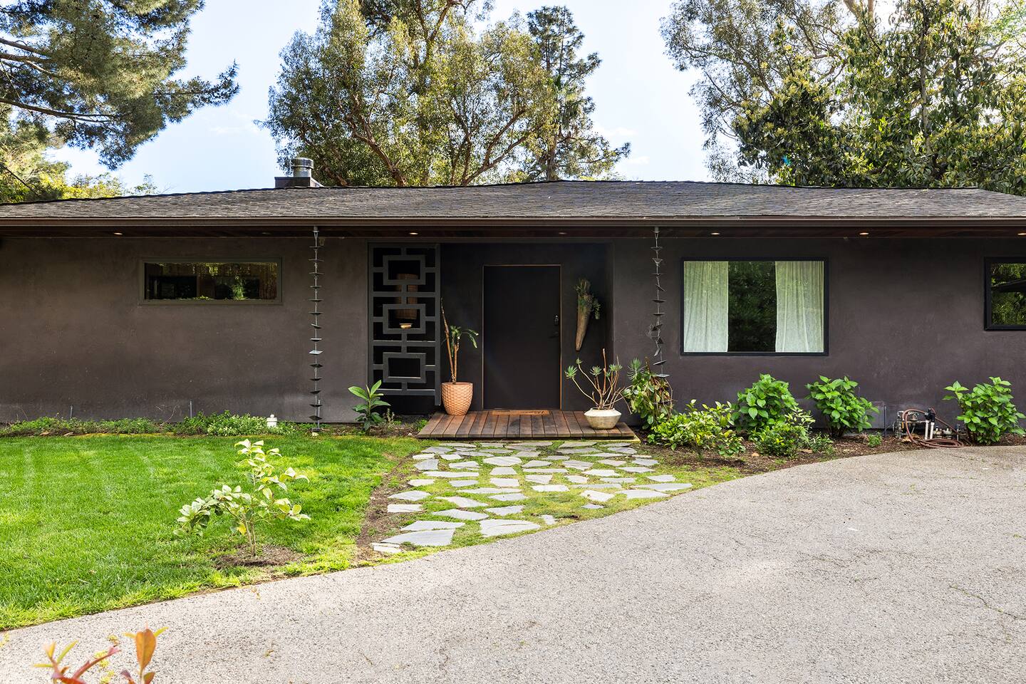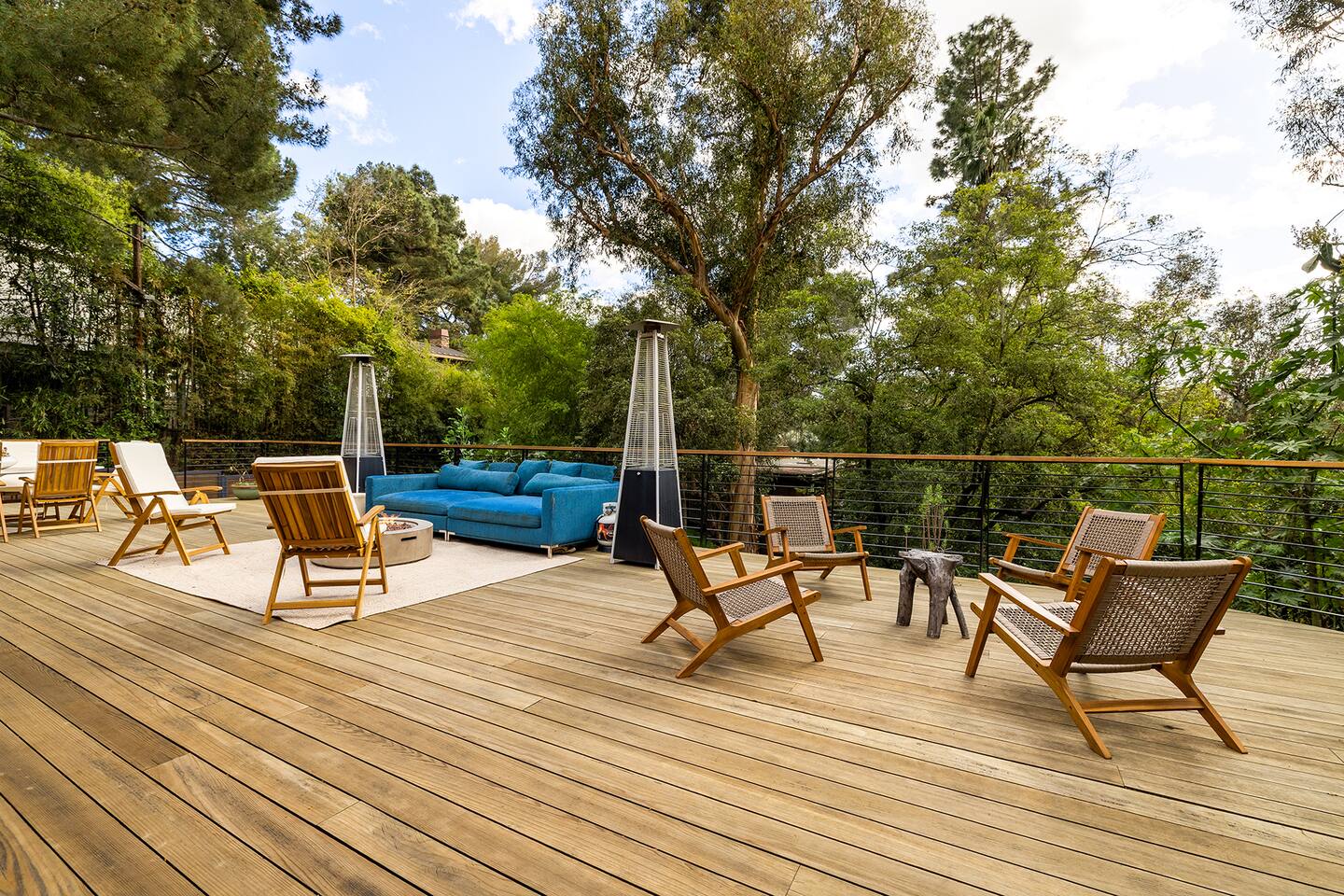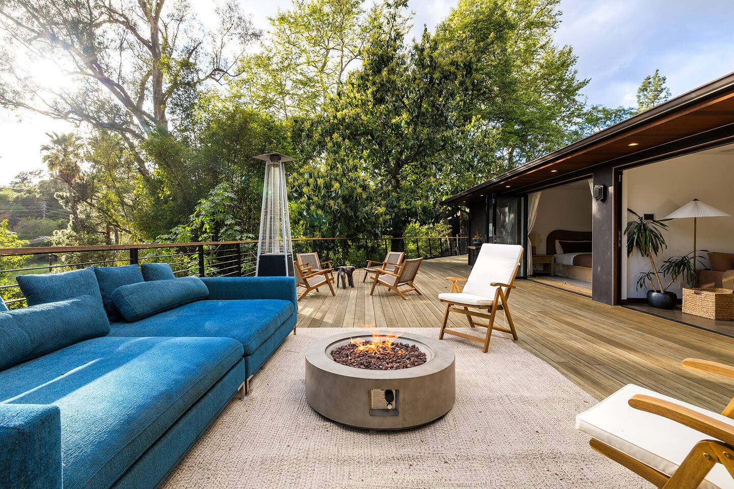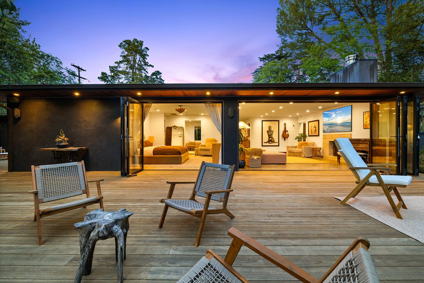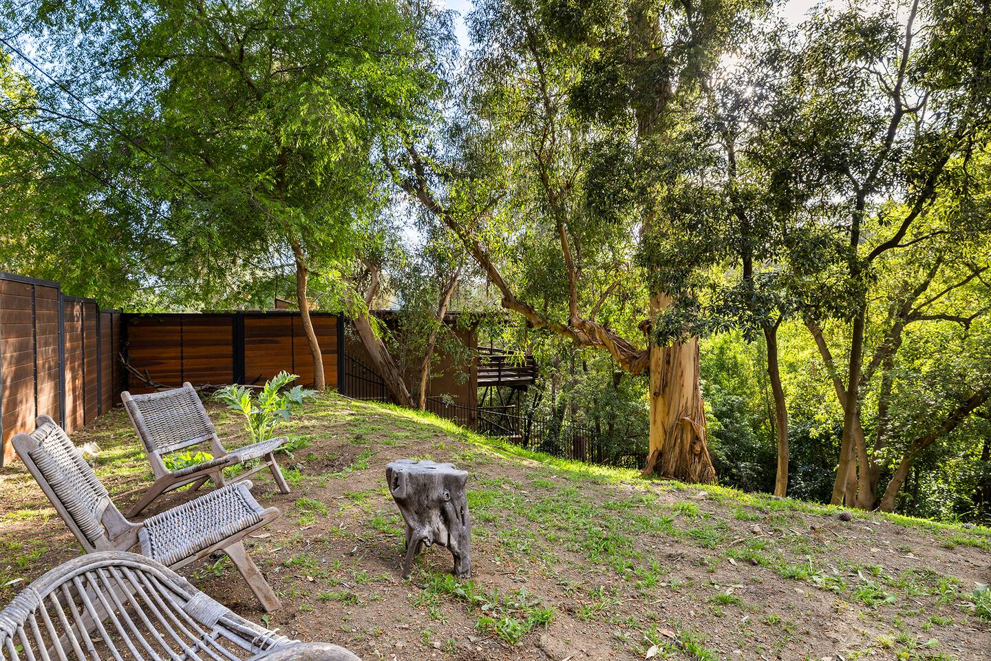 You have full and private use of the unit as shown in the pictures. The property sits in the Hollywood Hills neighborhood of Los Angeles, known for its scenic hillside views, quiet residential streets, and close proximity to popular attractions—about a 10-minute drive to the Hollywood Sign, 15 minutes to Sunset Boulevard, and 20 minutes to West Hollywood. This 2-bedroom, 2.5-bathroom single-family home, built in 1955, spans 1,846 sq. ft. and offers a tranquil retreat with modern amenities and panoramic canyon views, just a 30-minute drive to downtown Los Angeles. **Book for 31 nights or more to avoid city taxes.** - Bedroom 1: King bed, wooden dresser, rustic stool, plush armchair, floor-to-ceiling windows with access to private deck, TV. - Bedroom 2: Queen bed, bean bag chair, boucle armchair, playful alpaca décor, full-length mirror, wooden shelf, large window. - Optional Office/Bedroom: Desk and chair, convertible into sleeping space. - Bathroom 1: Freestanding bathtub, walk-in shower with rainfall head & bench, double vanity with mirror, sliding doors to outdoor deck. - Bathroom 2: Walk-in shower with dual shower heads, granite vanity with sink, modern black toilet, natural light window. - Half Bathroom: Toilet, floating vanity with sink, ornate framed mirror, stylish black & white design. - Living Room: Plush sectional sofa, flat-screen TV, fireplace, piano & guitar, modern artwork, recessed lighting, access to outdoor deck with sofa, chairs, and fire pit. - Kitchen: Fully equipped kitchen, light wood cabinets with marble countertops, stainless steel refrigerator, range & microwave, dining table, kitchen island, open shelving décor, etc. - Outdoor Deck: Blue sectional sofa, wooden chairs, circular dining table with cushioned chairs, outdoor fire pit, built-in fireplace, heat lamps, surrounded by greenery, etc. - Laundry Area: Wood cabinetry with black countertop, stainless steel sink, glass decanters (wet bar setup), plus a pair of stainless steel washing machines. Please note: We provide starter paper products, soap, etc., but as we only host monthly stays, guests will be responsible for replenishing their own consumable products.