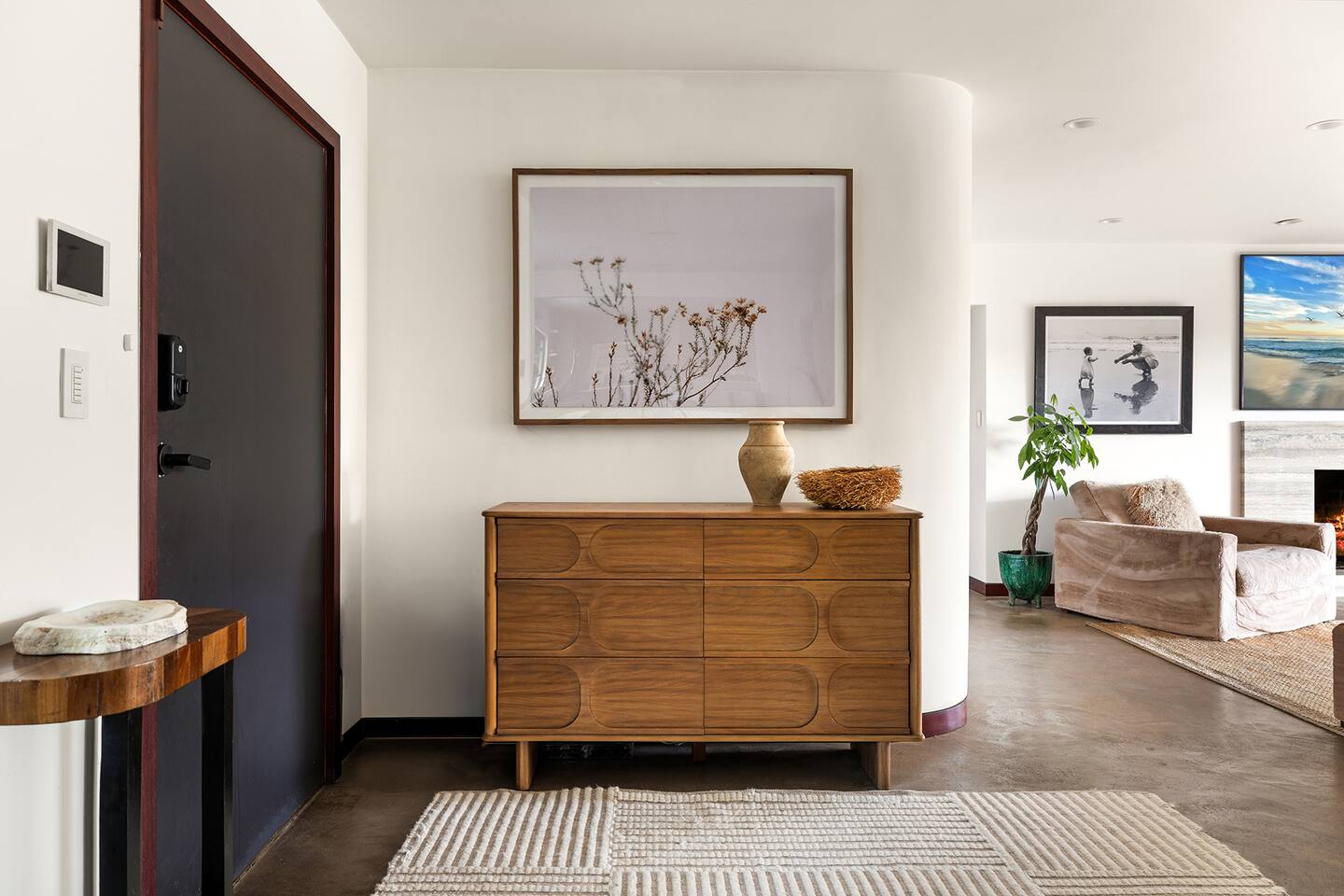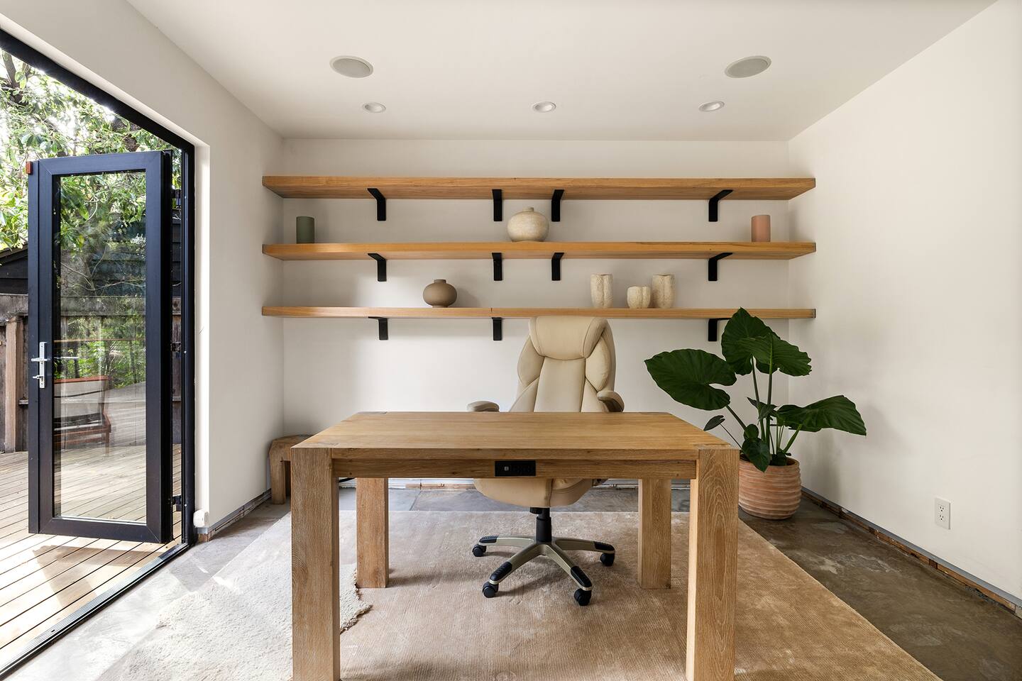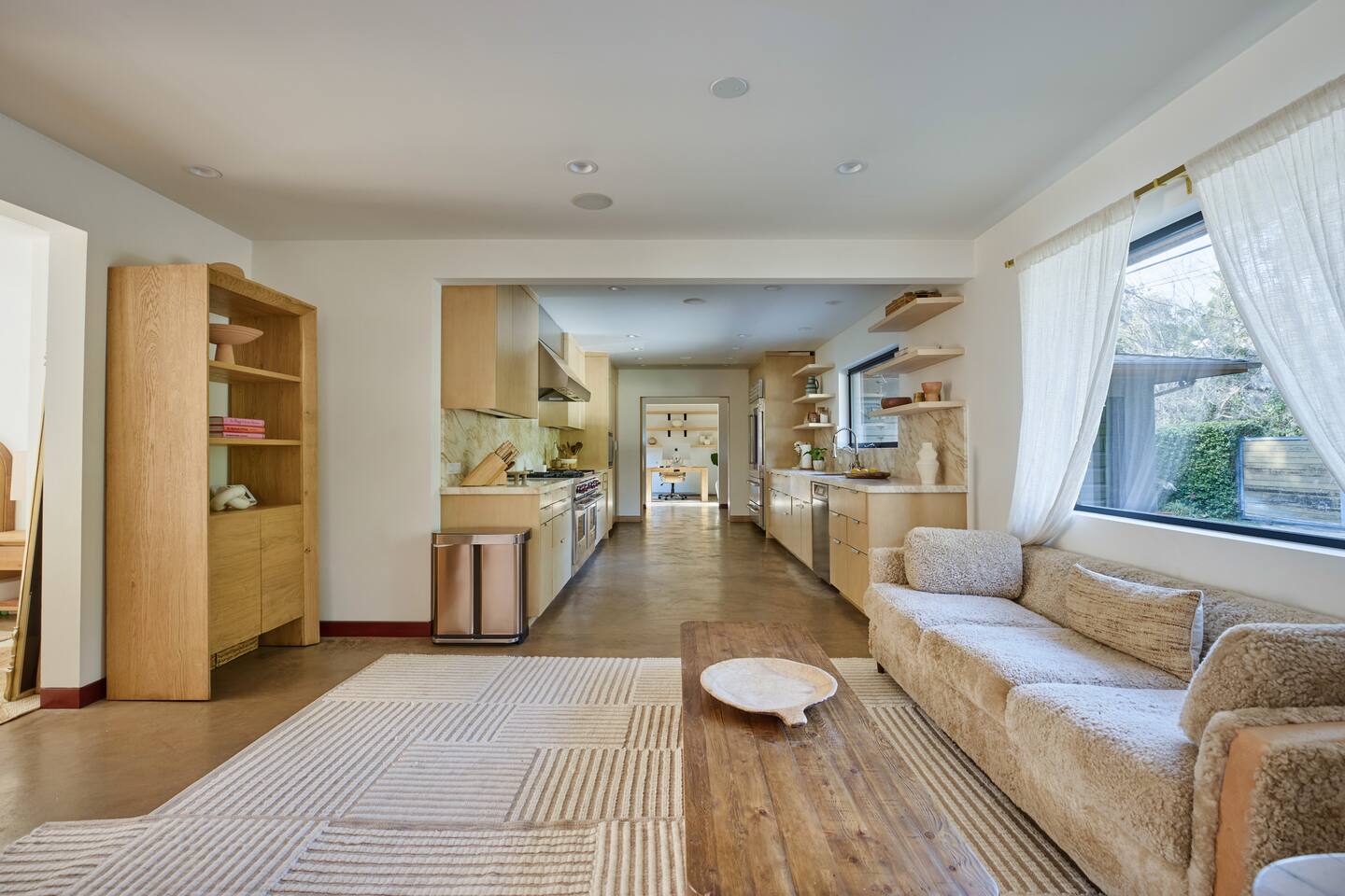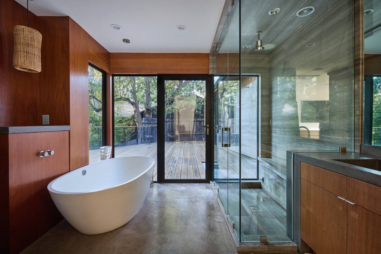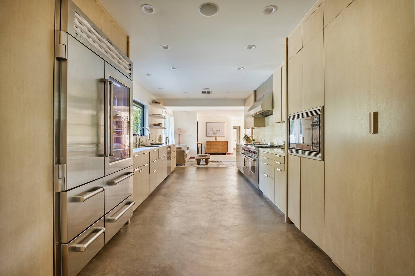 You have full and private use of the unit as shown in the pictures. The property sits in the Hollywood Hills neighborhood of Los Angeles, known for its scenic hillside views, quiet residential streets, and close proximity to popular attractions—about a 10-minute drive to the Hollywood Sign, 15 minutes to Sunset Boulevard, and 20 minutes to West Hollywood. This 2-bedroom, 2.5-bathroom single-family home, built in 1955, spans 1,846 sq. ft. and offers a tranquil retreat with modern amenities and panoramic canyon views, just a 30-minute drive to downtown Los Angeles. **Book for 31 nights or more to avoid city taxes.** - Bedroom 1: King bed, wooden dresser, rustic stool, plush armchair, floor-to-ceiling windows with access to private deck, TV. - Bedroom 2: Queen bed, bean bag chair, boucle armchair, playful alpaca décor, full-length mirror, wooden shelf, large window. - Optional Office/Bedroom: Desk and chair, convertible into sleeping space. - Bathroom 1: Freestanding bathtub, walk-in shower with rainfall head & bench, double vanity with mirror, sliding doors to outdoor deck. - Bathroom 2: Walk-in shower with dual shower heads, granite vanity with sink, modern black toilet, natural light window. - Half Bathroom: Toilet, floating vanity with sink, ornate framed mirror, stylish black & white design. - Living Room: Plush sectional sofa, flat-screen TV, fireplace, piano & guitar, modern artwork, recessed lighting, access to outdoor deck with sofa, chairs, and fire pit. - Kitchen: Fully equipped kitchen, light wood cabinets with marble countertops, stainless steel refrigerator, range & microwave, dining table, kitchen island, open shelving décor, etc. - Outdoor Deck: Blue sectional sofa, wooden chairs, circular dining table with cushioned chairs, outdoor fire pit, built-in fireplace, heat lamps, surrounded by greenery, etc. - Laundry Area: Wood cabinetry with black countertop, stainless steel sink, glass decanters (wet bar setup), plus a pair of stainless steel washing machines. Please note: We provide starter paper products, soap, etc., but as we only host monthly stays, guests will be responsible for replenishing their own consumable products.