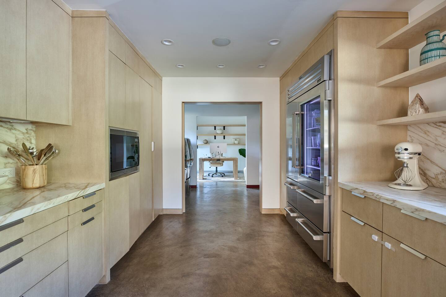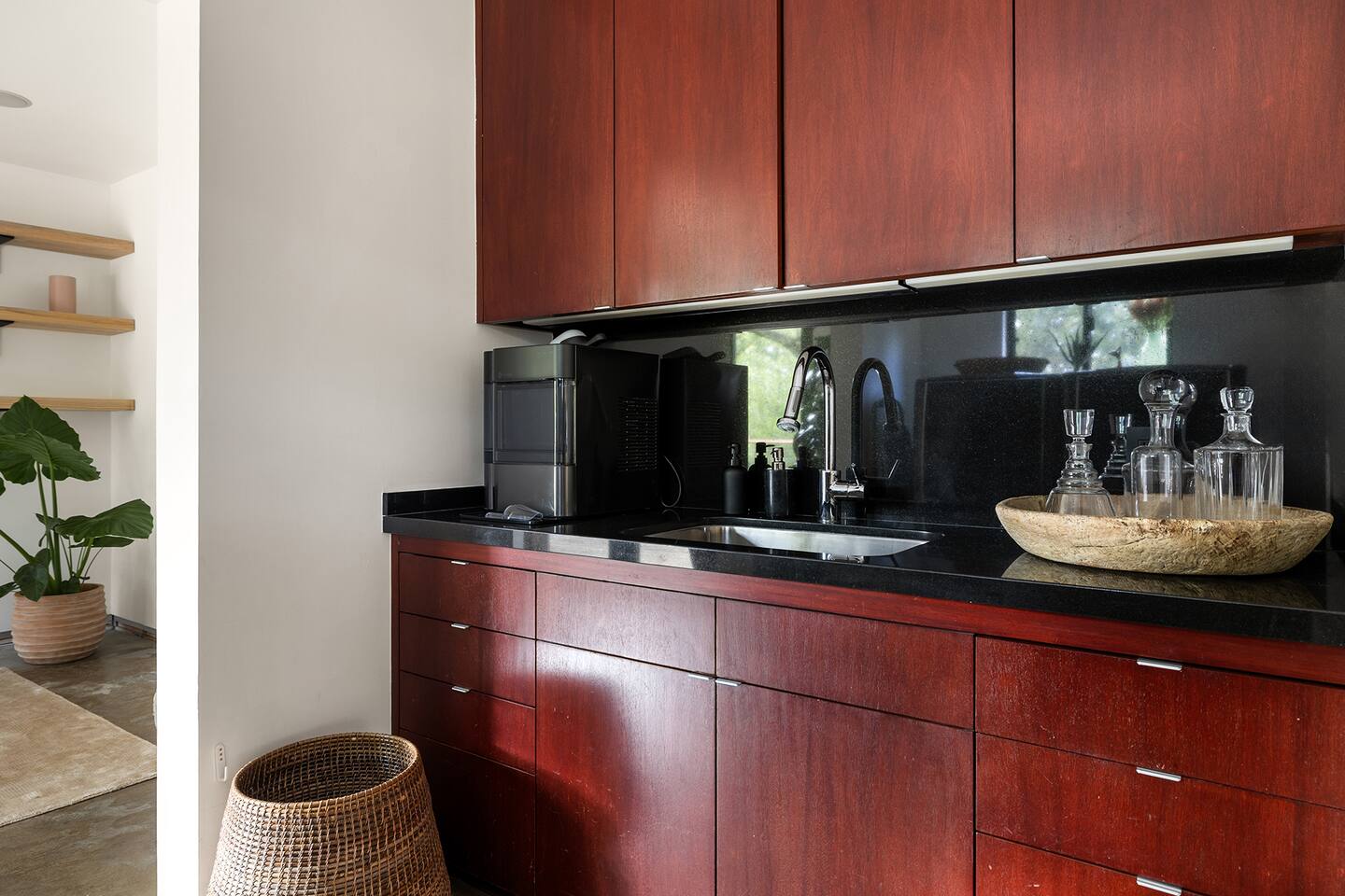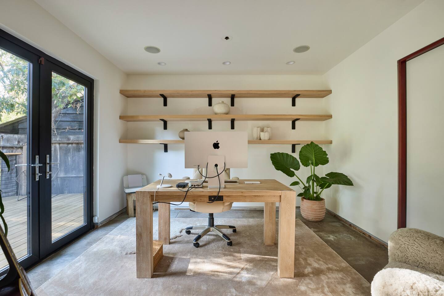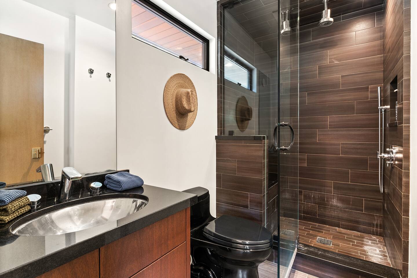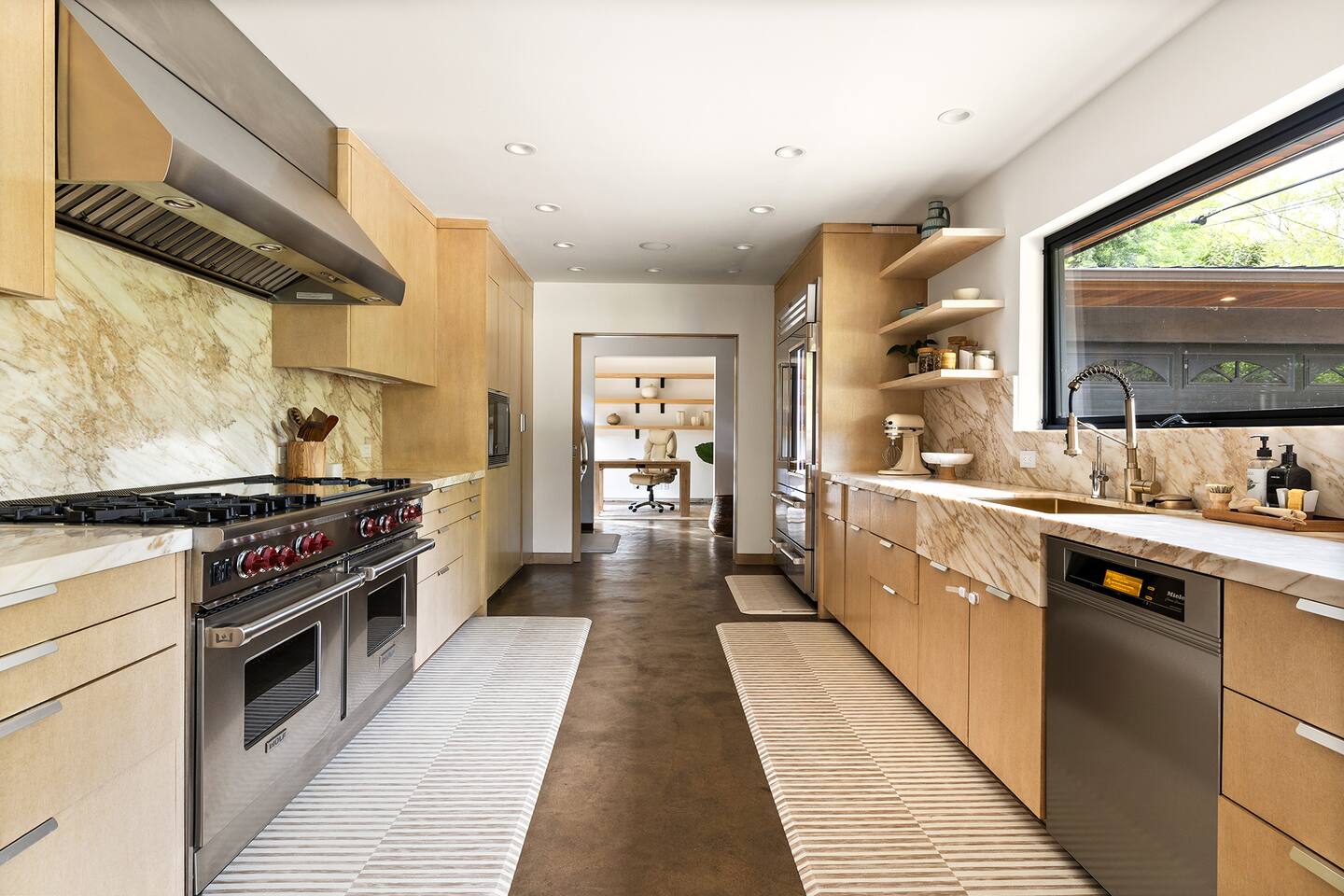 You have full and private use of the unit as shown in the pictures. The property sits in the Hollywood Hills neighborhood of Los Angeles, known for its scenic hillside views, quiet residential streets, and close proximity to popular attractions—about a 10-minute drive to the Hollywood Sign, 15 minutes to Sunset Boulevard, and 20 minutes to West Hollywood. This 2-bedroom, 2.5-bathroom single-family home, built in 1955, spans 1,846 sq. ft. and offers a tranquil retreat with modern amenities and panoramic canyon views, just a 30-minute drive to downtown Los Angeles. **Book for 31 nights or more to avoid city taxes.** - Bedroom 1: King bed, wooden dresser, rustic stool, plush armchair, floor-to-ceiling windows with access to private deck, TV. - Bedroom 2: Queen bed, bean bag chair, boucle armchair, playful alpaca décor, full-length mirror, wooden shelf, large window. - Optional Office/Bedroom: Desk and chair, convertible into sleeping space. - Bathroom 1: Freestanding bathtub, walk-in shower with rainfall head & bench, double vanity with mirror, sliding doors to outdoor deck. - Bathroom 2: Walk-in shower with dual shower heads, granite vanity with sink, modern black toilet, natural light window. - Half Bathroom: Toilet, floating vanity with sink, ornate framed mirror, stylish black & white design. - Living Room: Plush sectional sofa, flat-screen TV, fireplace, piano & guitar, modern artwork, recessed lighting, access to outdoor deck with sofa, chairs, and fire pit. - Kitchen: Fully equipped kitchen, light wood cabinets with marble countertops, stainless steel refrigerator, range & microwave, dining table, kitchen island, open shelving décor, etc. - Outdoor Deck: Blue sectional sofa, wooden chairs, circular dining table with cushioned chairs, outdoor fire pit, built-in fireplace, heat lamps, surrounded by greenery, etc. - Laundry Area: Wood cabinetry with black countertop, stainless steel sink, glass decanters (wet bar setup), plus a pair of stainless steel washing machines. Please note: We provide starter paper products, soap, etc., but as we only host monthly stays, guests will be responsible for replenishing their own consumable products.