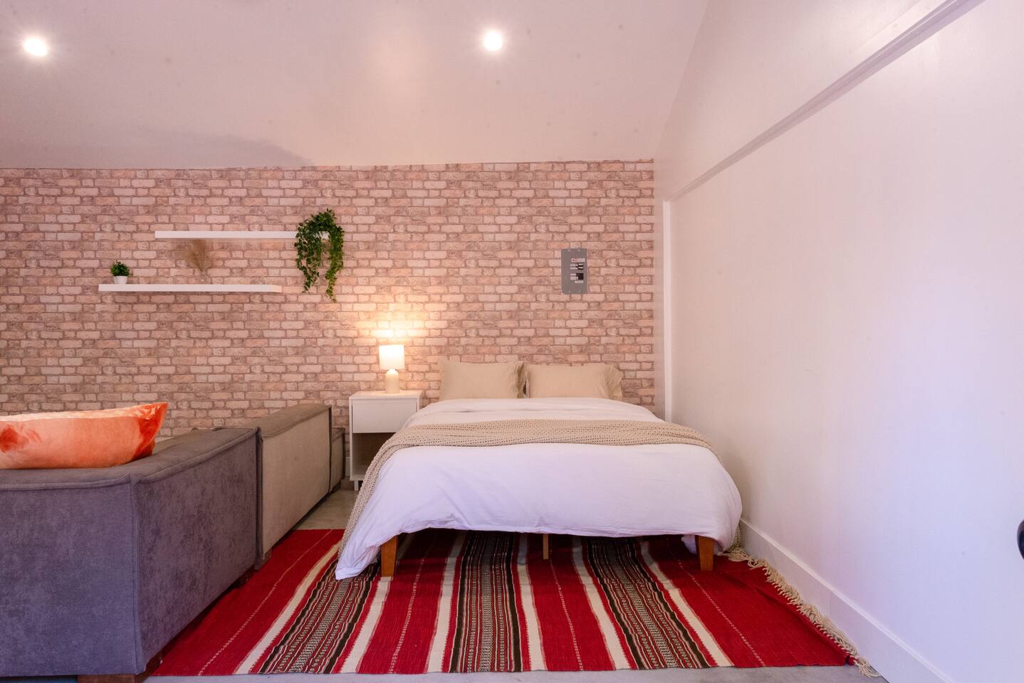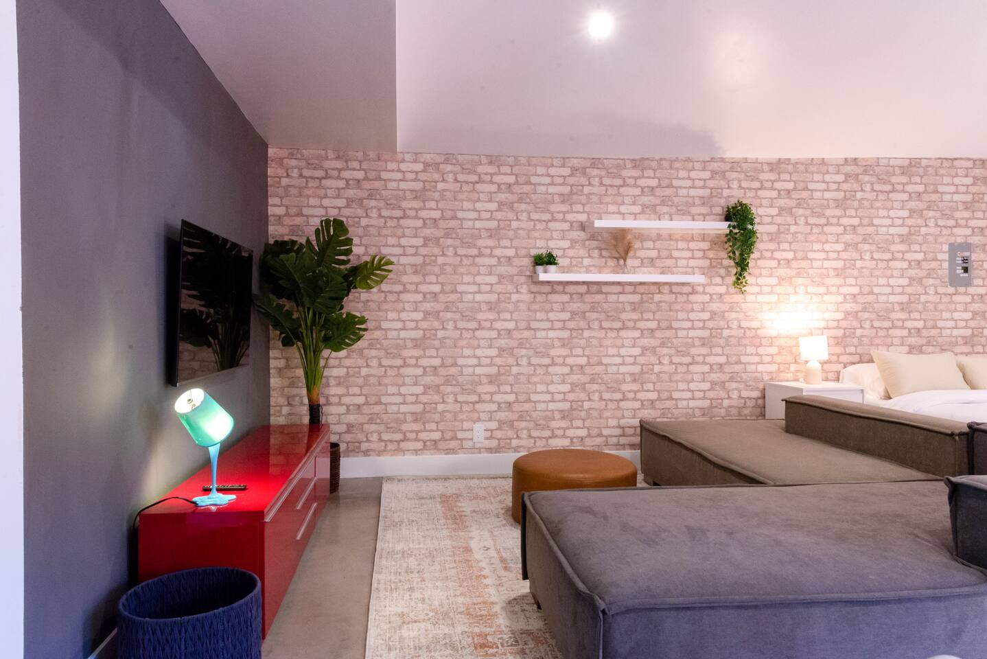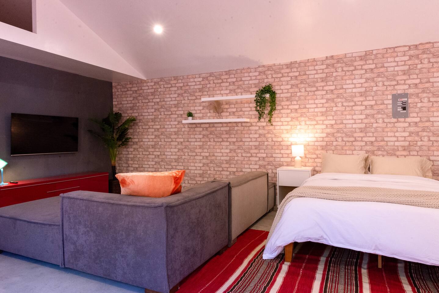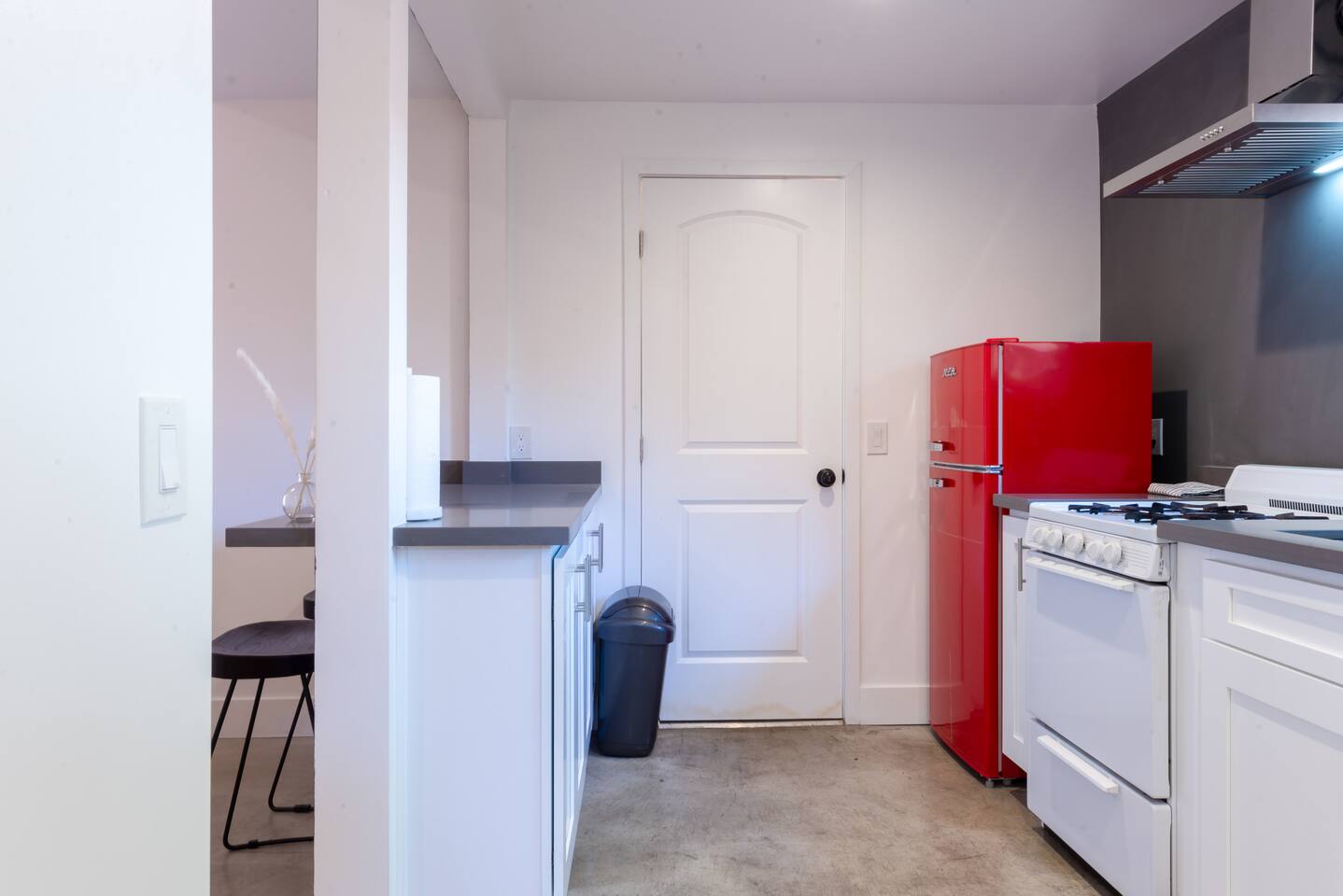 Private cozy guesthouse in Inglewood, minutes from So-Fi Stadium. Features a gated driveway leading to a standalone guesthouse with smooth concrete floors and an open-concept living room, smart TV, streaming, and high-speed Wi-Fi. Includes a Queen bed, fully equipped kitchen with stove, dishwasher, coffee/toaster station, and quartz bar seating. Beautiful bath with walk-in shower, natural light, vaulted ceilings, and a fan. Note: A house is on the other side of the property, but it’s private.