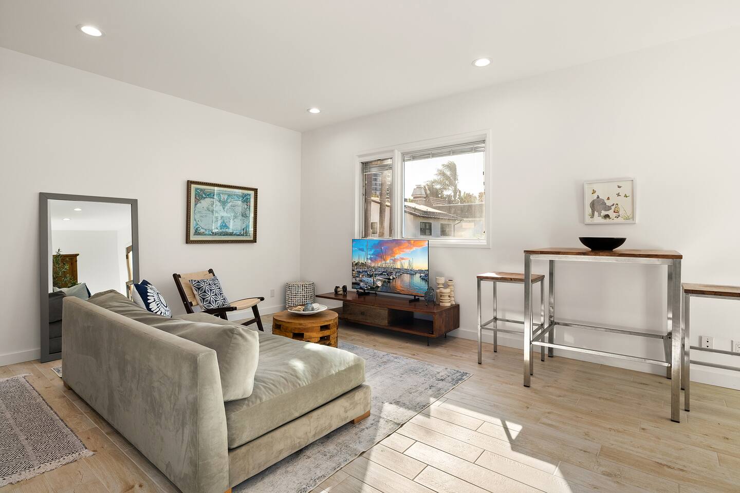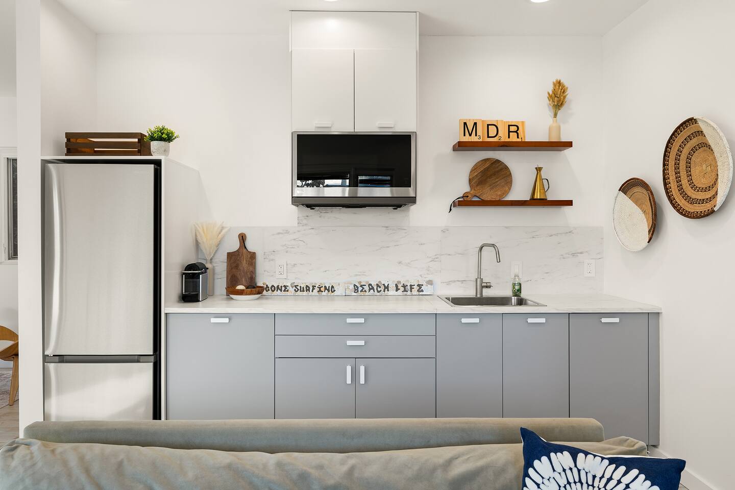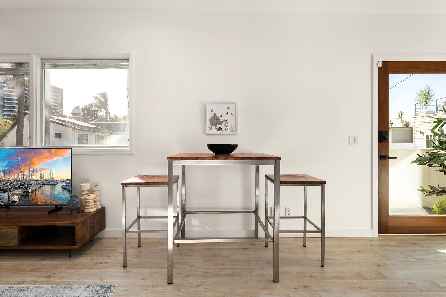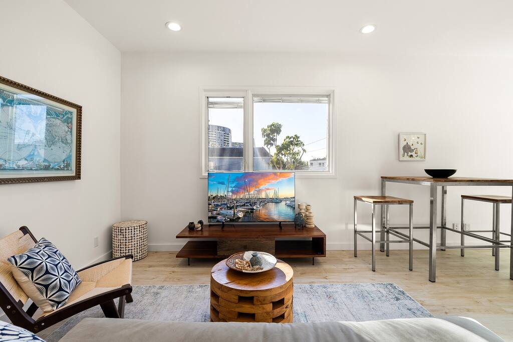 Relax in this bright, modern studio located in a quiet back house in Marina del Rey. Thoughtfully designed with clean lines and warm finishes, the space offers comfort, privacy, and everything you need for a short or extended stay. The studio features a comfortable king bed, a cozy living area with a sofa and TV, and a fully equipped kitchen with full-size appliances, microwave, and coffee maker—perfect for cooking at home. The private full bathroom is sleek and modern, stocked with fresh towels and essentials. Large windows bring in natural light while maintaining privacy, and the peaceful setting makes it ideal for guests looking to unwind after a day at the beach or exploring LA. Highlights: • Quiet, private back-house studio • Full kitchen with modern appliances • Full bathroom with walk-in shower • Comfortable sleeping and living areas • Smart TV & Wi-Fi • Easy access to Venice Beach, Marina del Rey, Santa Monica, and LAX Perfect for solo travelers, couples, or professionals seeking a calm, stylish stay near the coast.