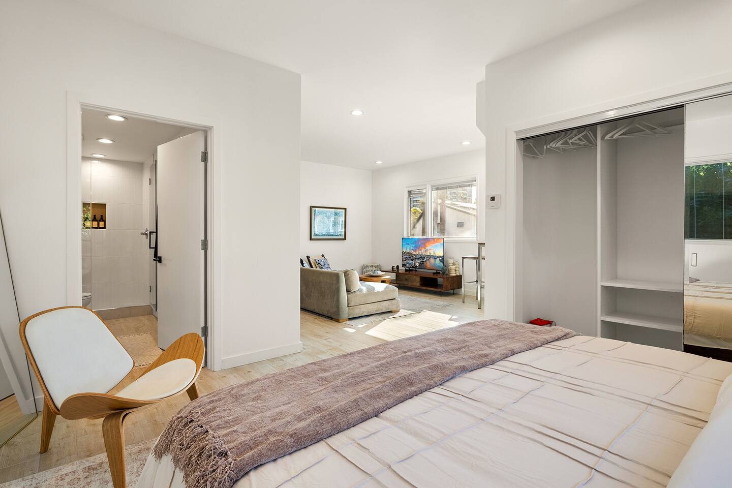 Stay in this modern, private studio ADU in Marina del Rey, just steps from the marina and beach. The unit features a full kitchen, bathroom, and a cozy living area, perfect for 1–2 guests. Quiet and tucked behind the main house, it’s ideal for a relaxing getaway. Enjoy easy access to local dining, shopping, and waterfront activities while having your own comfortable, fully equipped space. **30 nights minimum, choose 31 nights to remove city tax.**