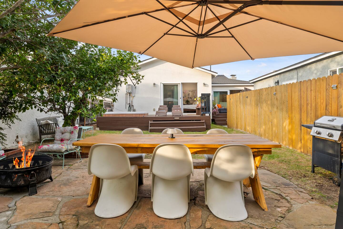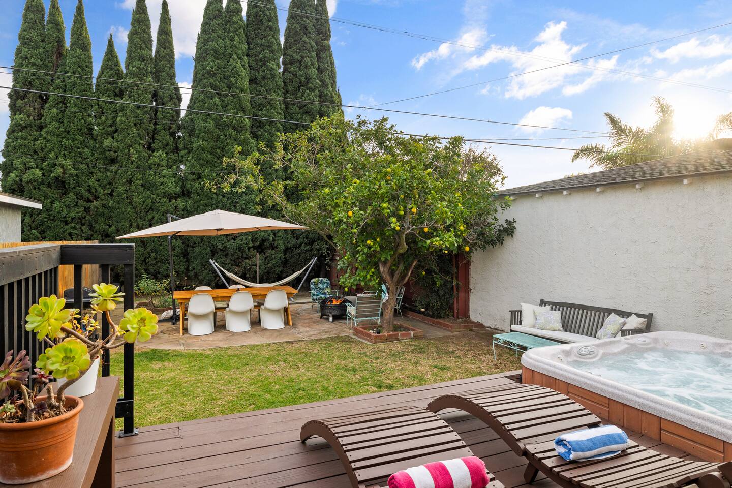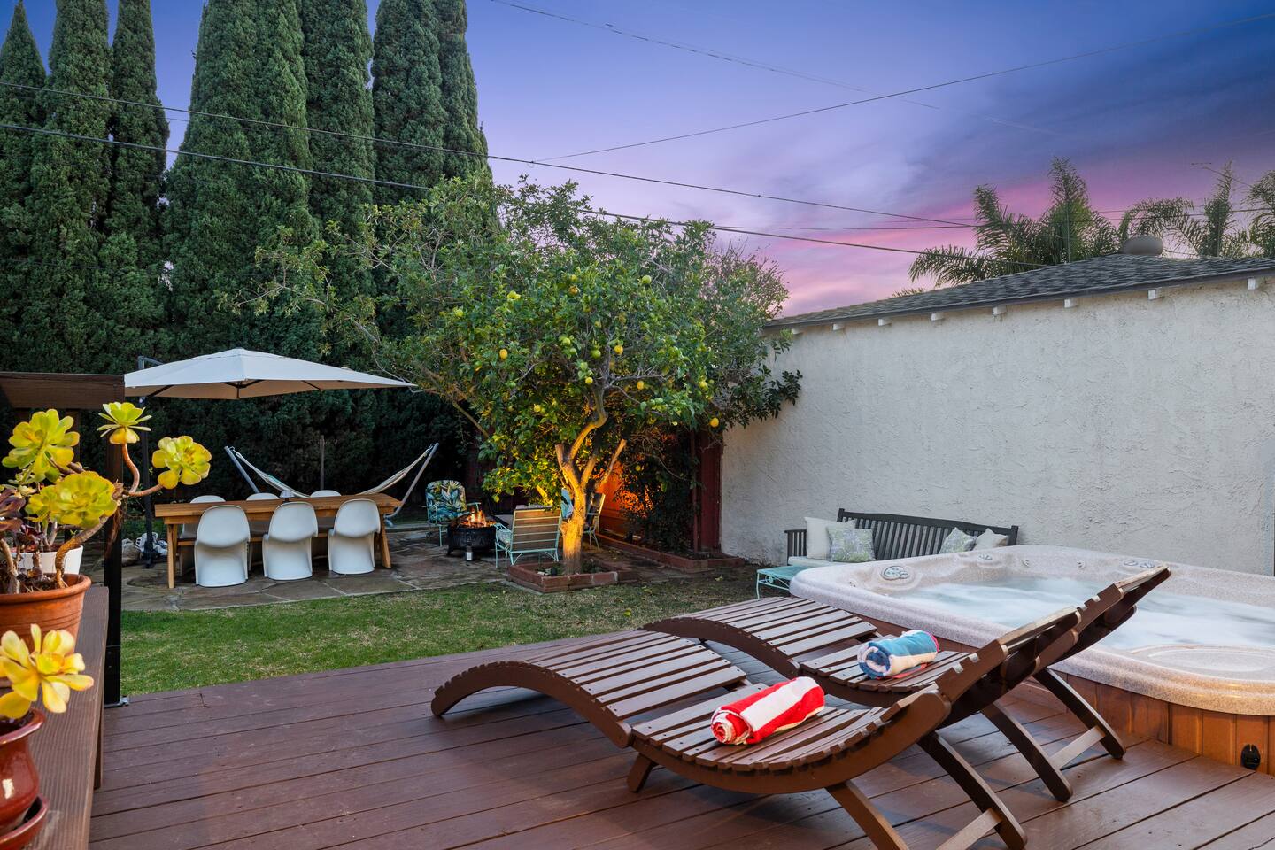 Welcome to your Westchester retreat! This home is all about comfort and good vibes. The cozy living room with a fireplace flows into the dining area! Making it perfect for relaxing nights or sharing meals together. Step outside and you’ll find the backyard built for hanging out! Dinners at the big outdoor table, evenings by the fire pit, grilling on the BBQ, or just lounging under the lemon tree with a drink in hand. The master suite opens right onto the deck with a private hot tub, adding the perfect spot to unwind. For convenience, you’ve got parking for 2 cars, a washer and dryer, and a location that puts you close to Venice shops, restaurants, and of course, the beach. Whether you’re here to chill or gather with friends and family, this home makes it easy to do both.