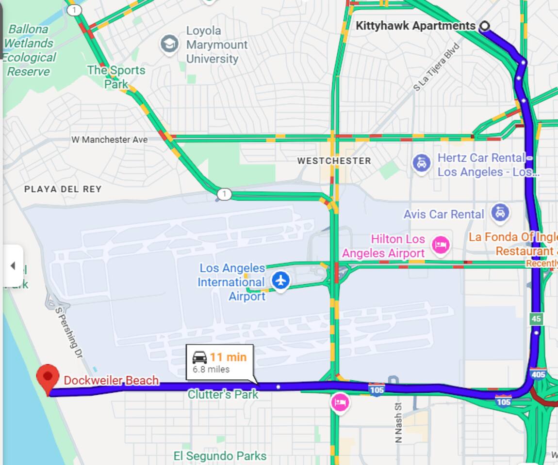 Welcome to this beautifully designed, modern home located on quiet Kittyhawk Avenue. Thoughtfully furnished with clean lines, warm textures, and plenty of natural light, this space is perfect for a relaxing stay in Los Angeles. **We’re currently updating the photos, please stay tuned.** The living area features a comfortable sofa, designer accents, a large Smart TV, and sliding doors that open to a private outdoor area, creating an airy indoor-outdoor feel. The open layout is ideal for unwinding, working remotely, or enjoying a quiet evening at home. The fully equipped modern kitchen offers ample storage, full-size appliances, sleek cabinetry, and everything you need to cook comfortably. Bright white finishes and modern details give the space a fresh, upscale feel. This home is thoughtfully laid out for comfort and privacy, making it a great fit for couples, small families, or professionals seeking a peaceful stay in a residential neighborhood while still being close to everything LA has to offer. Highlights: • Stylish, modern interiors • Comfortable living room with Smart TV • Fully equipped kitchen with modern appliances • Quiet residential street • Great natural light throughout • Ideal for short or longer stays Conveniently located with easy access to beaches, dining, shopping, and major freeways, Kittyhawk Avenue offers a perfect balance of comfort, style, and location.