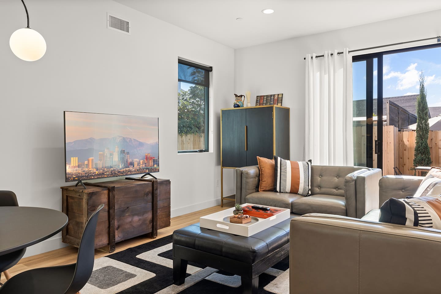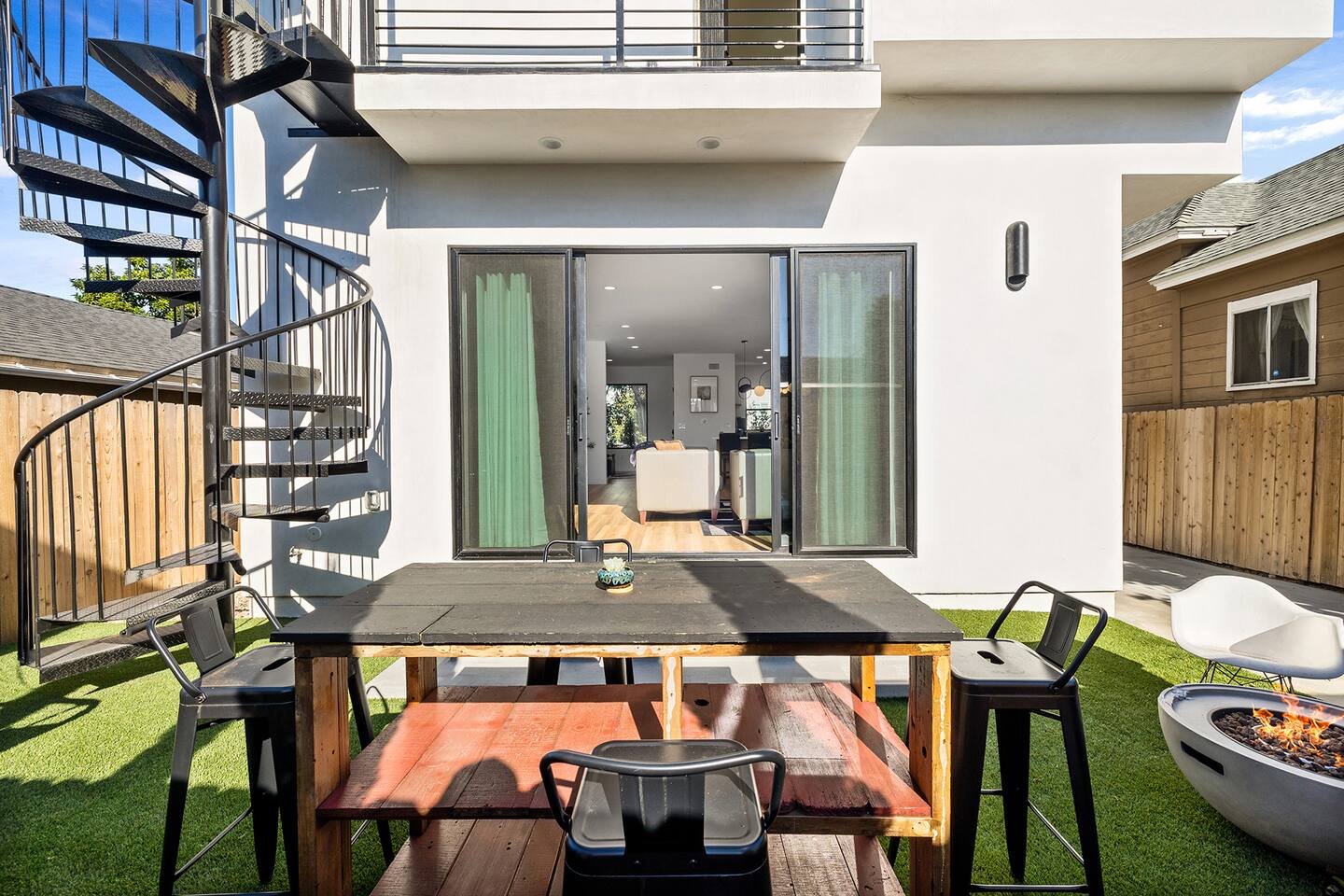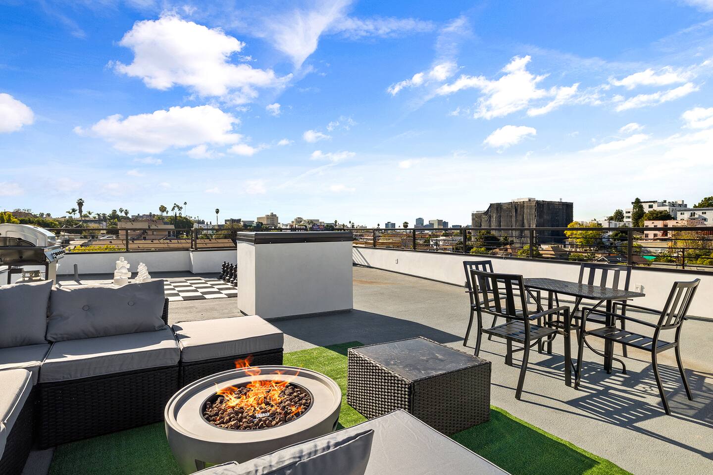 Step into unparalleled luxury with this exquisite 3BR, 2.5BA residence nestled near the heart of DTLA. Beyond the gated entrance, revel in the convenience of secured parking for 2 cars. A grand entrance welcomes you to a brand-new haven, featuring a kitchen adorned with top-of-the-line appliances, setting the stage for culinary excellence. The living room effortlessly extends to an outdoor paradise—a meticulously landscaped retreat with vibrant grass, an inviting fire pit, and carefully curated seating areas, including an alfresco dining space and a mini basketball hoop game for playful moments. The second floor is a haven of comfort. Three tastefully designed bedrooms await, accompanied by a convenient washer and dryer. The master bedroom beckons with a king-size bed offering breathtaking city views. Indulge in the opulence of an ensuite bathroom, complete with a spacious walk-in closet for all your wardrobe needs. The two additional bedrooms boast queen-size beds, ample storage within large closets, and sumptuous robes for added coziness. The bathroom on this floor is a sanctuary, featuring a deep tub and a rejuvenating shower. Venture to the third floor, where the rooftop unfolds as a panoramic view of DTLA. If that's not enough, the rooftop deck provides an elevated oasis with breathtaking views of Griffith Observatory and the iconic Hollywood sign, making every moment spent at home a visual delight. Embrace the cityscape from the comfort of plush outdoor seating around the fire pit. Engage in leisurely games on the rooftop's giant chess board, adding a touch of whimsy to your urban retreat. What truly sets this residence apart is its prime location just streets away from the picturesque Echo Park and a stone's throw from Silver Lake. Sports enthusiasts will appreciate the proximity to Dodger Stadium, adding an extra layer of excitement to the neighborhood. As you step into your immediate surroundings, you'll discover a neighborhood filled with places to quickly fall in love with. Whether it's the serene Echo Park, Silver Lake with its eclectic shops and cafes, or the electrifying atmosphere of Dodger Stadium on game day, this residence offers the ultimate urban living experience. This thoughtfully designed home seamlessly weaves together elegance and entertainment, promising a lifestyle of sophistication and leisure. Every detail, from the chic interiors to the enchanting rooftop, speaks to the art of living well. Your urban sanctuary is here—seize the opportunity to make it your own. Welcome to a life of unparalleled refinement!