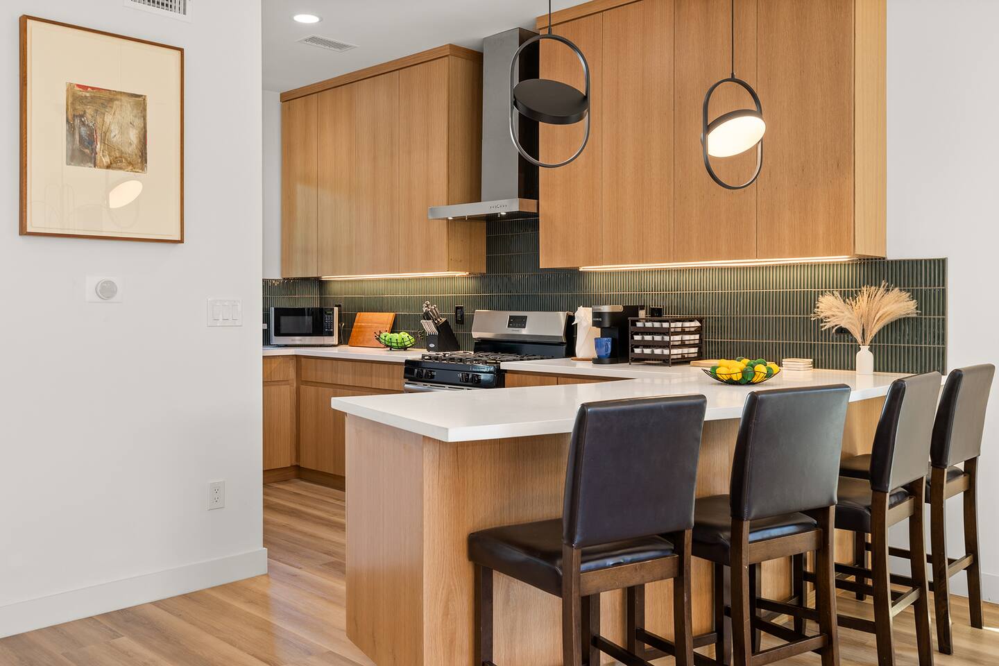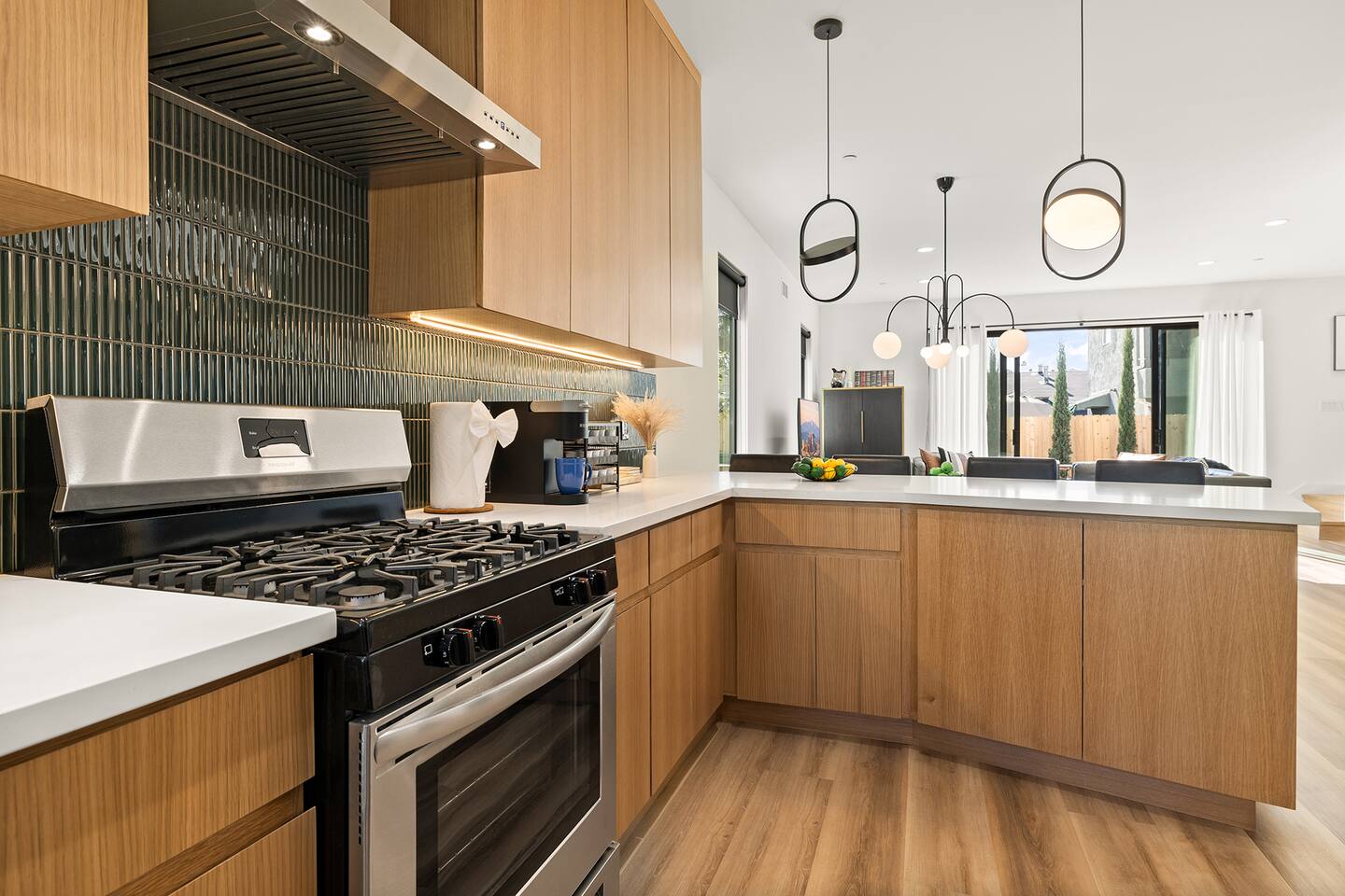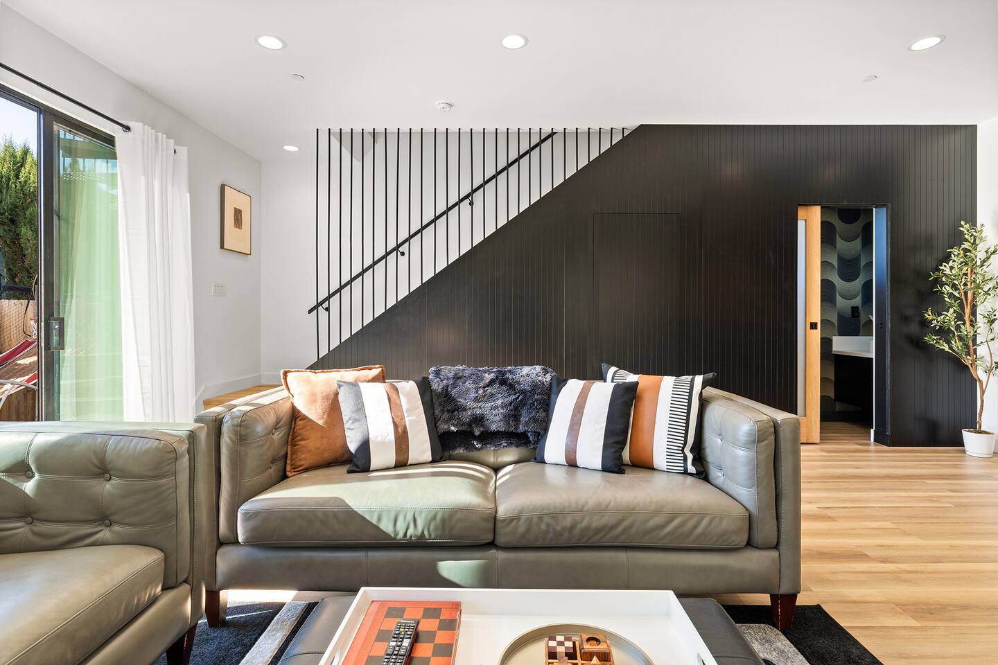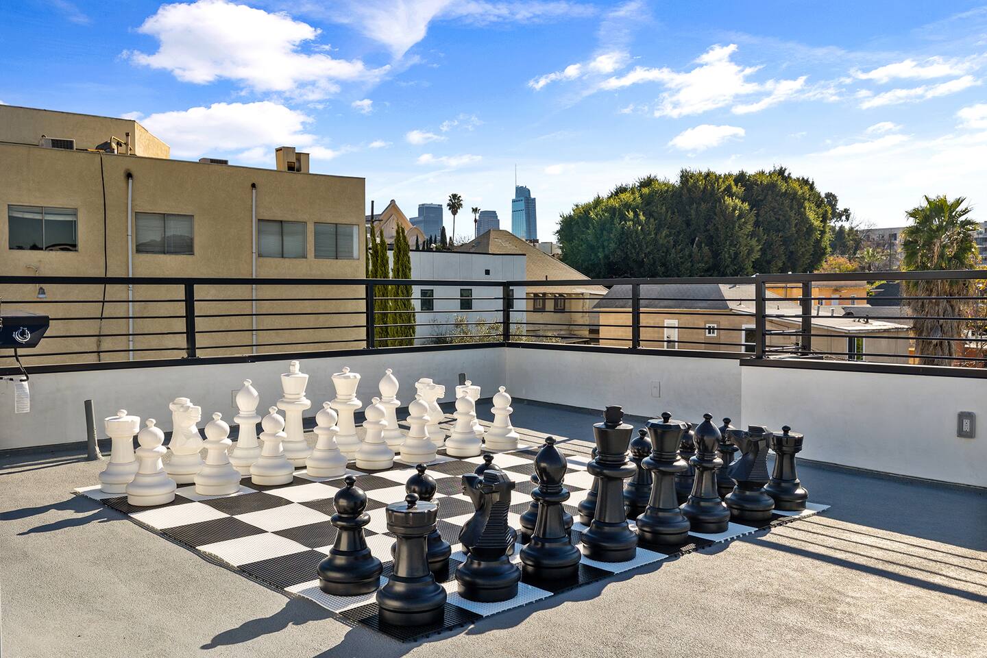 Step into unparalleled luxury with this exquisite 3BR, 2.5BA residence nestled near the heart of DTLA. Beyond the gated entrance, revel in the convenience of secured parking for 2 cars. A grand entrance welcomes you to a brand-new haven, featuring a kitchen adorned with top-of-the-line appliances, setting the stage for culinary excellence. The living room effortlessly extends to an outdoor paradise—a meticulously landscaped retreat with vibrant grass, an inviting fire pit, and carefully curated seating areas, including an alfresco dining space and a mini basketball hoop game for playful moments. The second floor is a haven of comfort. Three tastefully designed bedrooms await, accompanied by a convenient washer and dryer. The master bedroom beckons with a king-size bed offering breathtaking city views. Indulge in the opulence of an ensuite bathroom, complete with a spacious walk-in closet for all your wardrobe needs. The two additional bedrooms boast queen-size beds, ample storage within large closets, and sumptuous robes for added coziness. The bathroom on this floor is a sanctuary, featuring a deep tub and a rejuvenating shower. Venture to the third floor, where the rooftop unfolds as a panoramic view of DTLA. If that's not enough, the rooftop deck provides an elevated oasis with breathtaking views of Griffith Observatory and the iconic Hollywood sign, making every moment spent at home a visual delight. Embrace the cityscape from the comfort of plush outdoor seating around the fire pit. Engage in leisurely games on the rooftop's giant chess board, adding a touch of whimsy to your urban retreat. What truly sets this residence apart is its prime location just streets away from the picturesque Echo Park and a stone's throw from Silver Lake. Sports enthusiasts will appreciate the proximity to Dodger Stadium, adding an extra layer of excitement to the neighborhood. As you step into your immediate surroundings, you'll discover a neighborhood filled with places to quickly fall in love with. Whether it's the serene Echo Park, Silver Lake with its eclectic shops and cafes, or the electrifying atmosphere of Dodger Stadium on game day, this residence offers the ultimate urban living experience. This thoughtfully designed home seamlessly weaves together elegance and entertainment, promising a lifestyle of sophistication and leisure. Every detail, from the chic interiors to the enchanting rooftop, speaks to the art of living well. Your urban sanctuary is here—seize the opportunity to make it your own. Welcome to a life of unparalleled refinement!