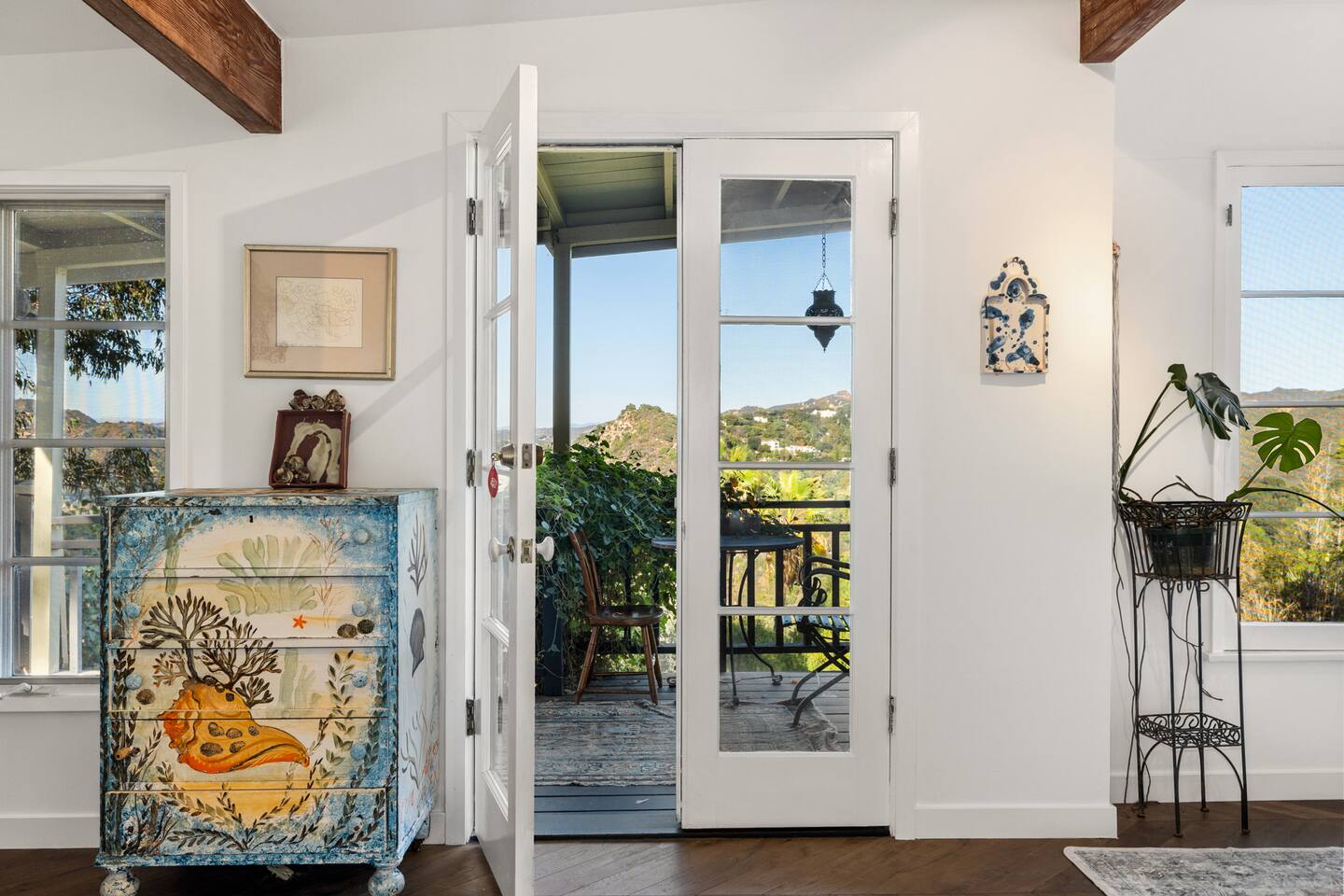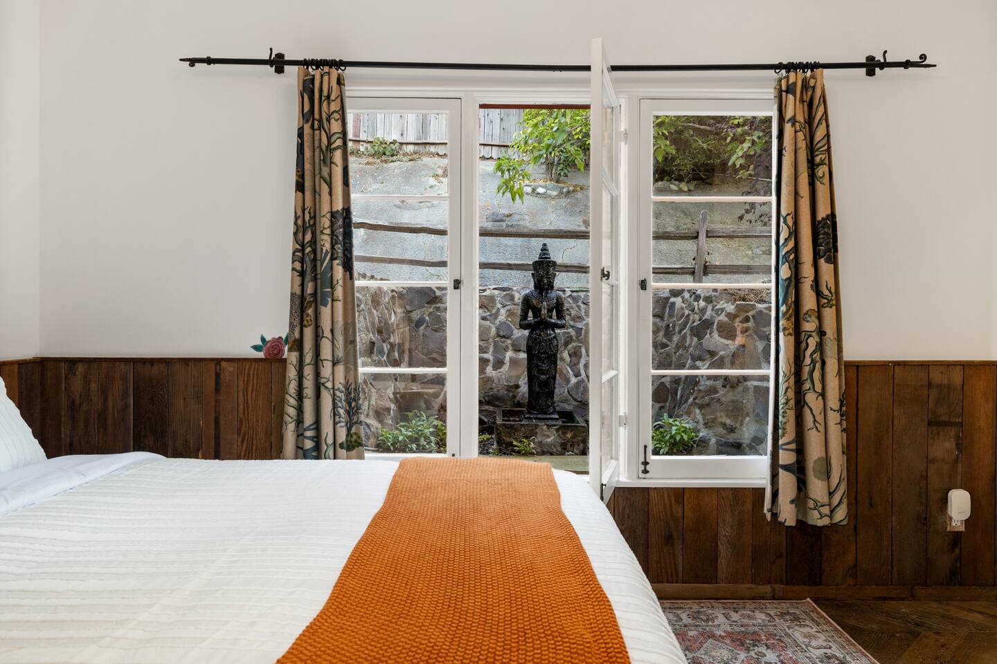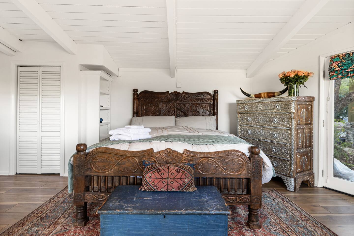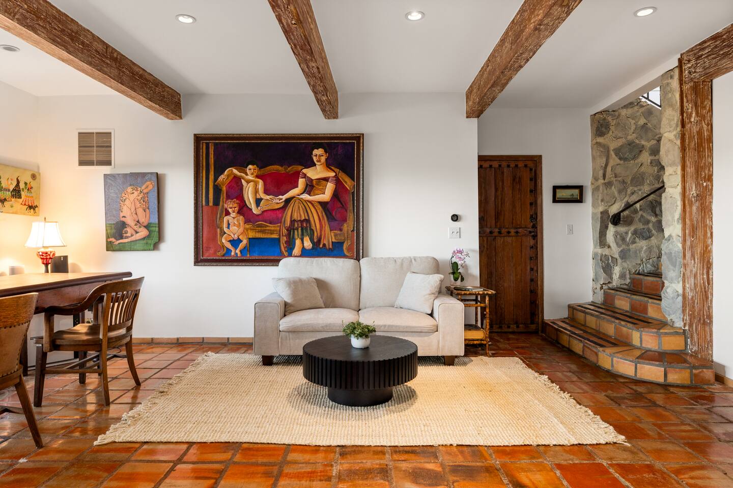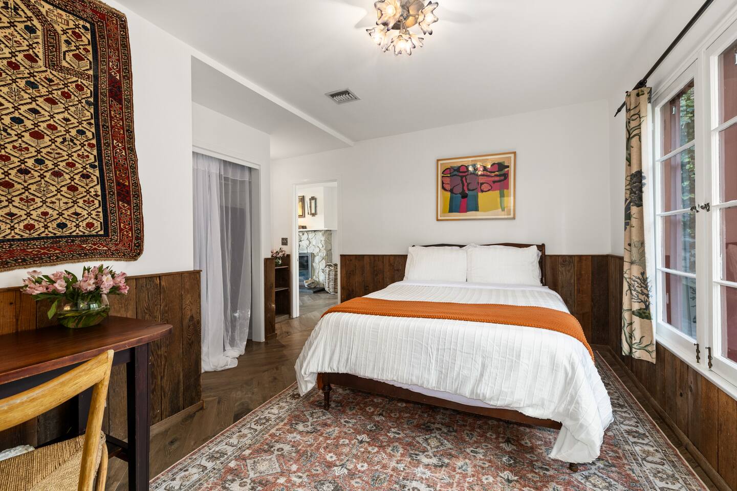 Welcome to your private Topanga retreat, a peaceful 3-bedroom, 2-bathroom home for rent tucked in the scenic hills of Los Angeles. This two-story vacation rental offers the perfect blend of vintage charm and modern comfort, surrounded by canyon views, trees, and light. Inside, the open-concept living room features a wood-burning fireplace, large windows, and cozy seating—ideal for relaxing after a hike or enjoying a quiet weekend. The fully equipped kitchen and spacious dining area make hosting or cooking at home easy and enjoyable. The home features: • A ground-floor queen suite with en-suite bath + direct outdoor access • A peaceful upstairs queen bedroom with lush views • A large primary bedroom with a king bed, en-suite bath, and serene tree-filled outlook One of the home’s standout features is the dedicated herbal room—a calming space to sip tea, blend herbs, journal, or reconnect. Whether you're staying for a short weekend getaway or a longer stay, this space supports restoration and creativity. Outside, you’ll find private decks and patios, an outdoor shower, and lush landscaping that provides a deep sense of quiet and seclusion. The home includes fast WiFi, laundry, and free parking for up to 6–7 cars. Located just minutes from Topanga Village, hiking trails, and a short drive to Malibu beaches, this Topanga vacation home offers the perfect setting for remote work, family stays, or quiet escapes.