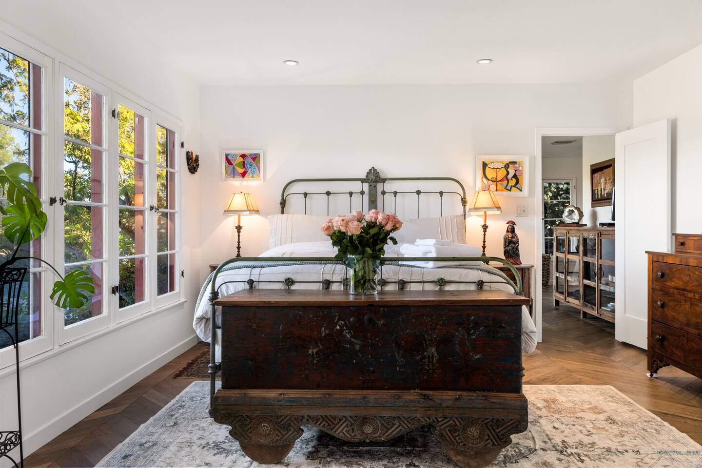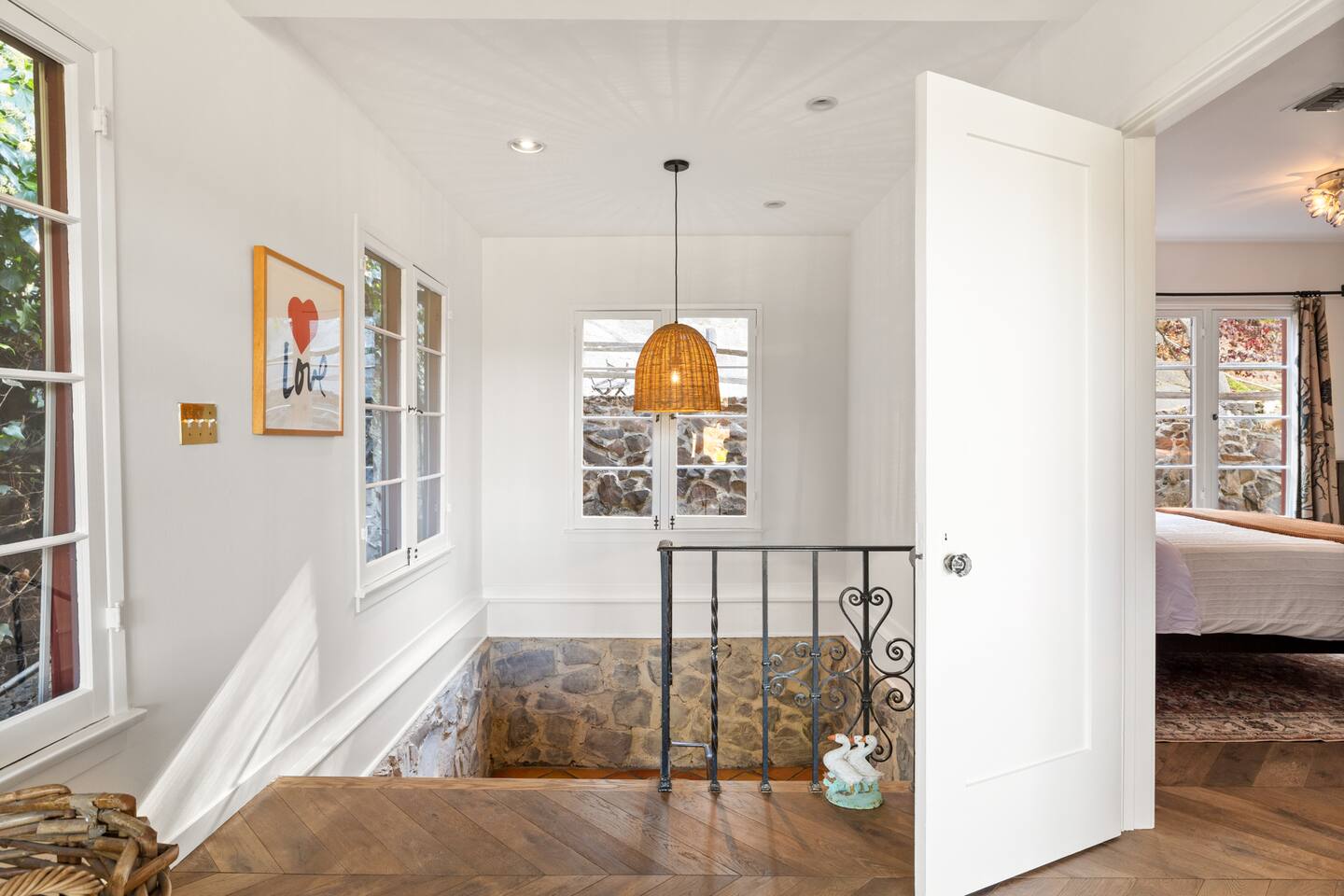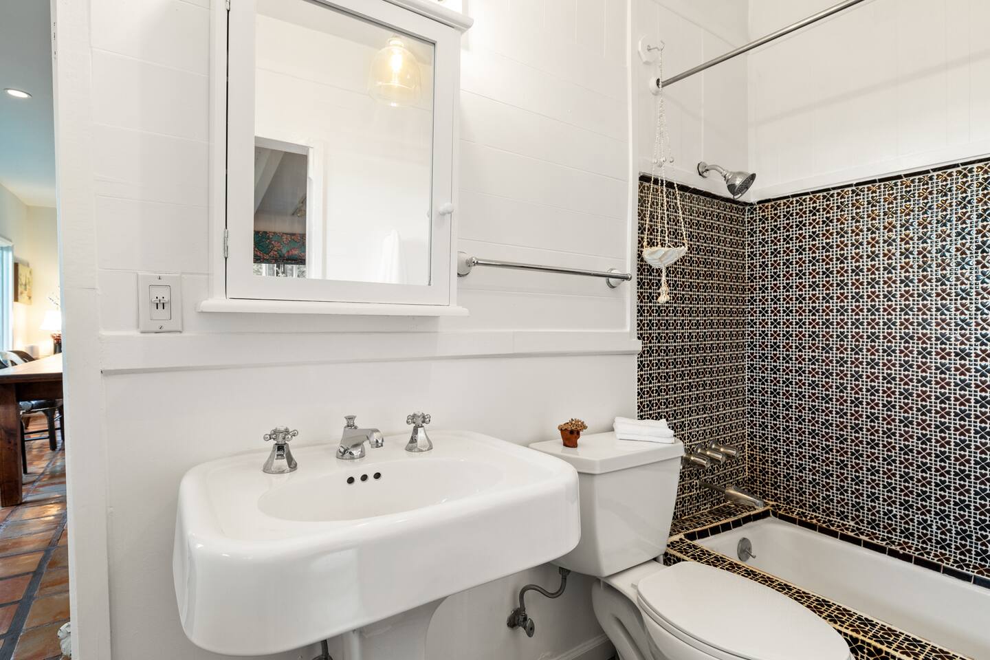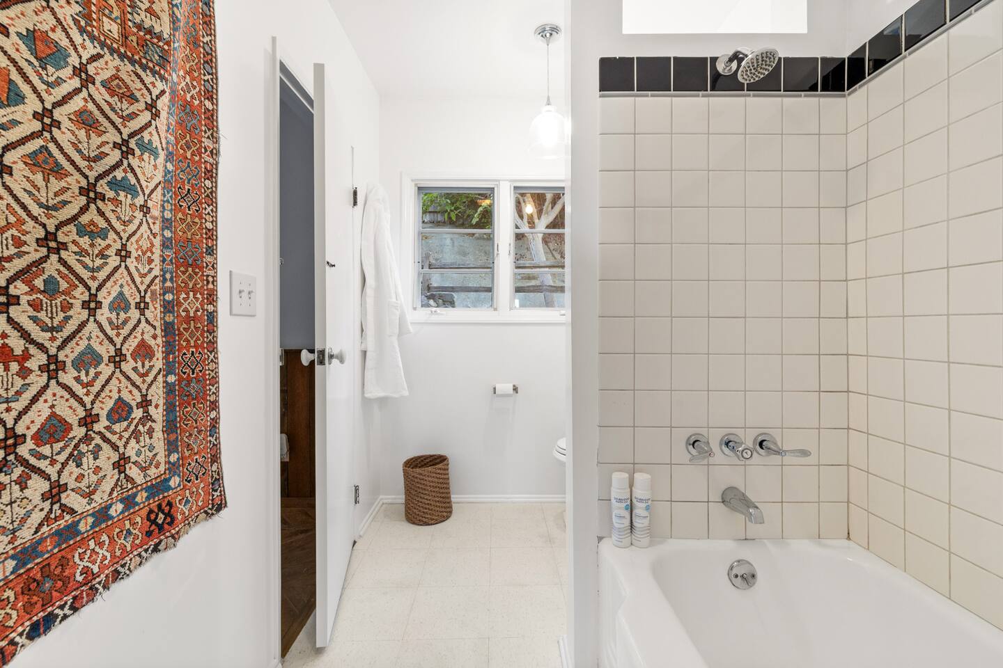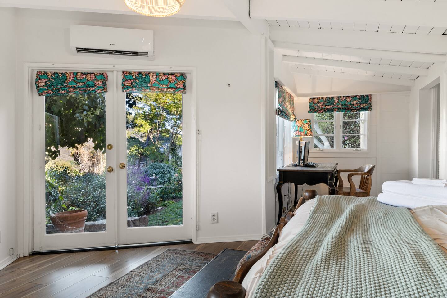 Welcome to your private Topanga retreat, a peaceful 3-bedroom, 2-bathroom home for rent tucked in the scenic hills of Los Angeles. This two-story vacation rental offers the perfect blend of vintage charm and modern comfort, surrounded by canyon views, trees, and light. Inside, the open-concept living room features a wood-burning fireplace, large windows, and cozy seating—ideal for relaxing after a hike or enjoying a quiet weekend. The fully equipped kitchen and spacious dining area make hosting or cooking at home easy and enjoyable. The home features: • A ground-floor queen suite with en-suite bath + direct outdoor access • A peaceful upstairs queen bedroom with lush views • A large primary bedroom with a king bed, en-suite bath, and serene tree-filled outlook One of the home’s standout features is the dedicated herbal room—a calming space to sip tea, blend herbs, journal, or reconnect. Whether you're staying for a short weekend getaway or a longer stay, this space supports restoration and creativity. Outside, you’ll find private decks and patios, an outdoor shower, and lush landscaping that provides a deep sense of quiet and seclusion. The home includes fast WiFi, laundry, and free parking for up to 6–7 cars. Located just minutes from Topanga Village, hiking trails, and a short drive to Malibu beaches, this Topanga vacation home offers the perfect setting for remote work, family stays, or quiet escapes.