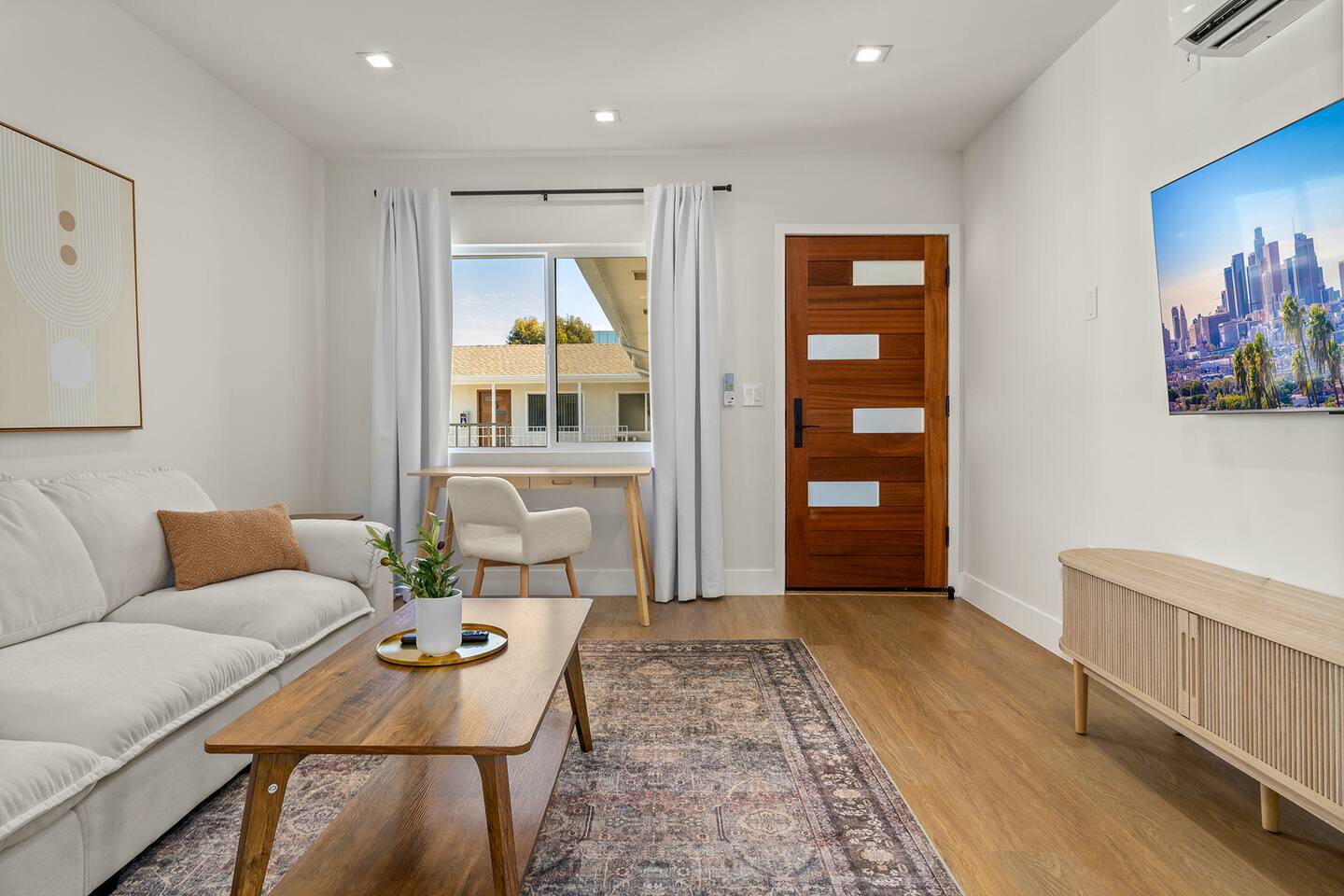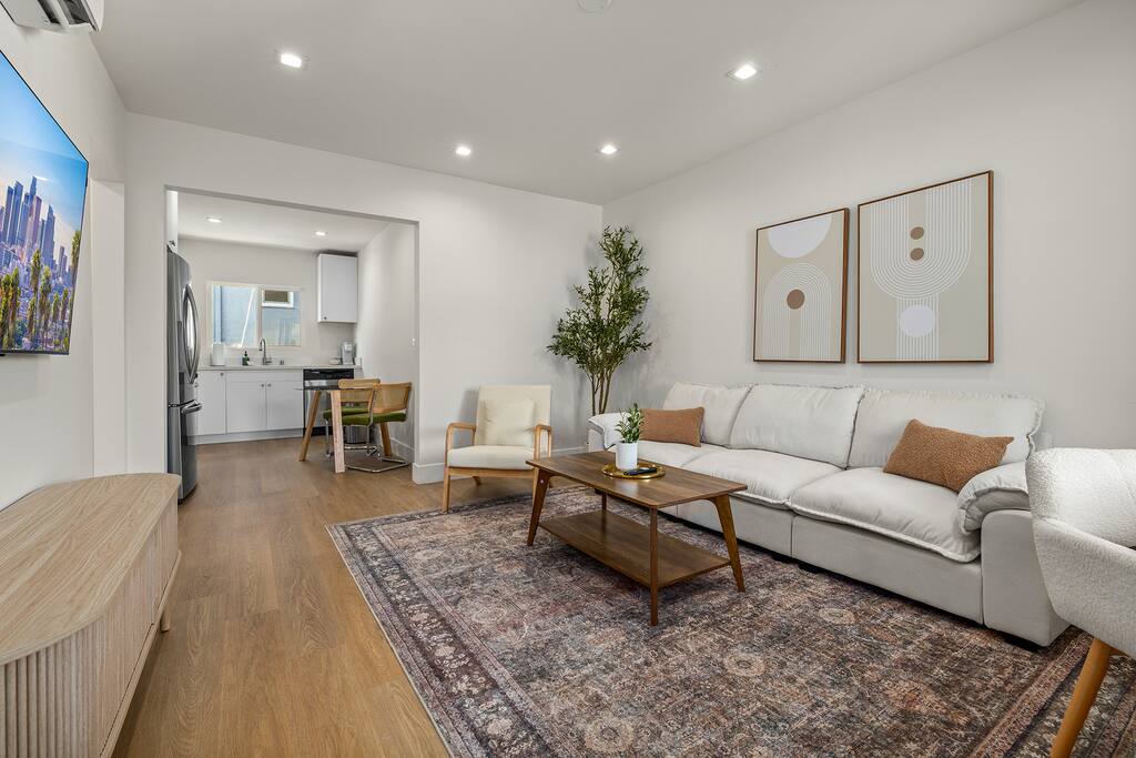 About the place This brand-new residence at The Montana is set on the quiet two-story building. Designed with both comfort and style, it features hardwood floors, air conditioning, and high-quality appliances that make everyday living easy. The kitchen is modern and practical, great for cooking at home or hosting a meal, while the bathroom offers clean, contemporary finishes with a spa-like feel. Built-in closets provide plenty of storage to keep the space organized. **30 nights minimum, choose 31 nights to remove city tax.** Outside, residents can enjoy a peaceful citrus-lined courtyard—perfect for morning coffee or evening downtime. The unit also includes an assigned parking space, with a washer and dryer room available in the building. Convenient, comfortable, and thoughtfully designed, this home is well-suited for both short- and long-term stays. What to expect on the place Modern Design – Brand-new residence on the first floor of a quiet two-story building, featuring sleek hardwood floors and air conditioning. Kitchen – Contemporary kitchen with high-end appliances, designed for both everyday meals and entertaining. Bathroom – Stylish finishes create a clean, spa-like atmosphere. Storage – Built-in closets provide plenty of space to stay organized. Shared Spaces – Relax in the citrus-lined courtyard, perfect for mornings or evenings. Parking – One assigned parking space included. Laundry – Convenient washer and dryer available in the building. Comfort & Lifestyle – A thoughtfully designed space that’s ideal for both business and leisure stays. Whether you're commuting, exploring, or relaxing at home, this location offers the best of the Westside lifestyle. Location is key, and The Montana places you right in the heart of it all. Just minutes from UCLA and Westwood Village, you’ll be close to top restaurants, shops, cultural spots, and everyday conveniences. From grocery stores and coffee shops to fitness studios and Brentwood’s dining and retail scene, everything you need is only a short drive or bike ride away. The Montana isn’t just a place to live. It’s a place to thrive. Book now and save!